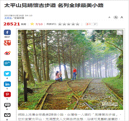 「見晴懷古步道」及「鐵杉林自然步道」分別列選為“全球最美28條小路,只求此生與你一起走過!” 及“全球最美的30條小路,一定要去的遠方!