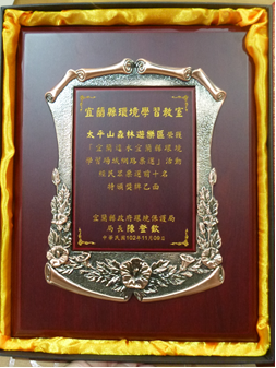 羅東自然教育中心及太平山國家森林遊樂區102年11月9日分別獲頒宜蘭縣政府「宜蘭逕水宜蘭縣環境學習場域網路票選活動」第4名及第9名。