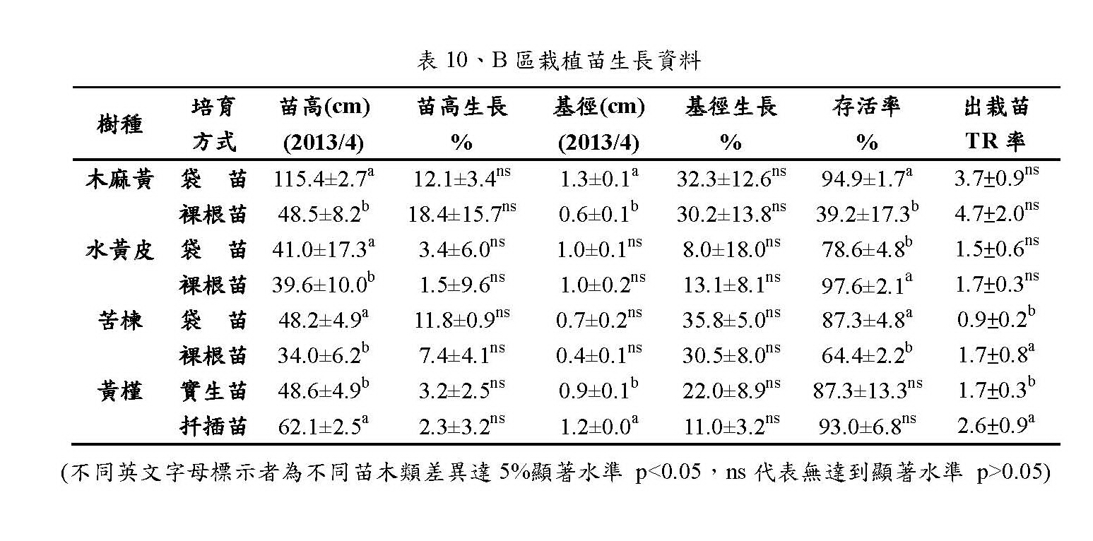 宜蘭地區海岸線防風林容易遭受天災及人為干擾影響,至林分功能退化,為改善現存海岸林,維持海岸林健康及完整性,進行委託研究。從海岸林變遷、海岸林社區認知、參與意願及海岸林建造技術等探討防風海岸林復育之模式。如比較不同樹種(水黃皮、苦楝、木麻黃等)苗木之光適應性及耐旱性等環境逆境的表現;進行海岸林林冠孔隙區播種試驗,比較不同樹種表現等,以為海岸林更新技術施業之參考。 台灣東北地區海岸林造林試驗地區 三種鹽份溶液處理二個月之苗木