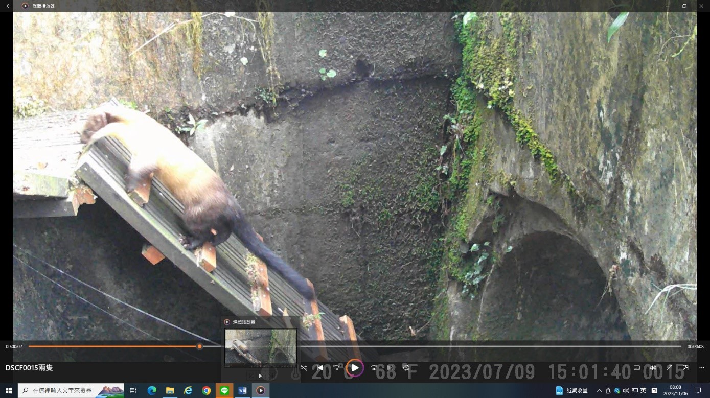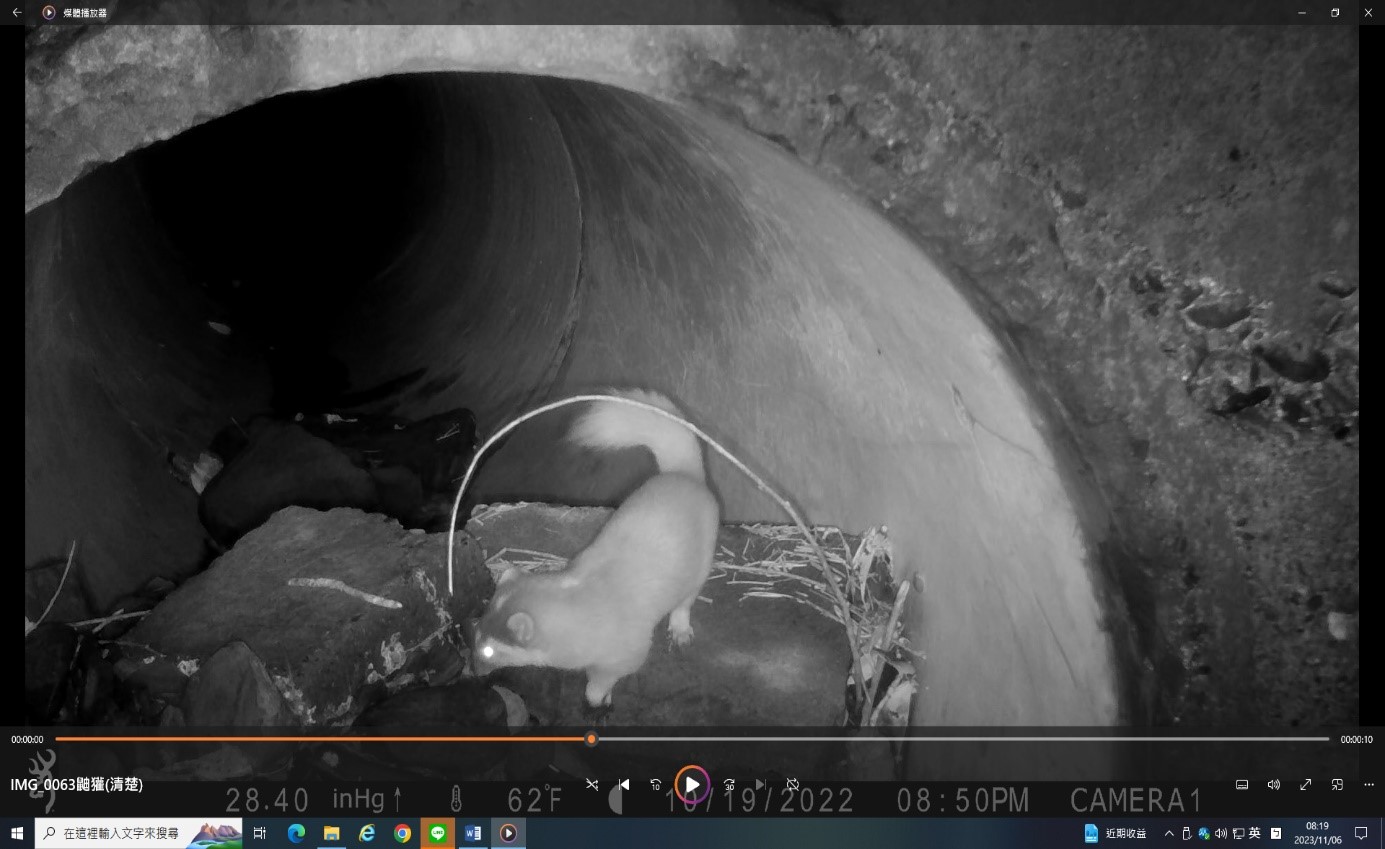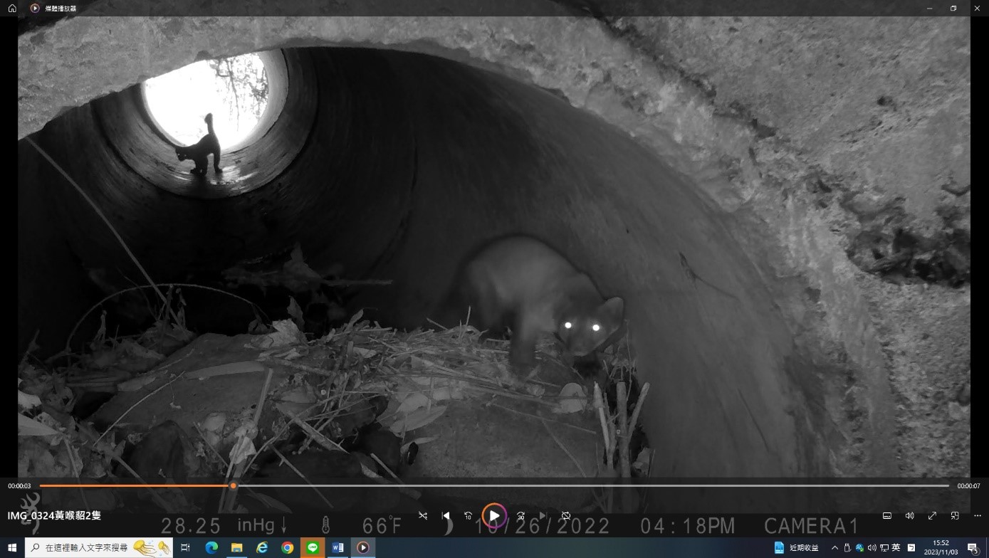 動物們藉由脫困通道上、下排水溝的集水陰井,並透過路面下排水涵管或箱涵,往來於林道兩側山坡,彷彿是城市裡的人行地下穿越道,複製到森林裡成了另類的動物穿越道。彷彿也聽到動物們這麼說:「車子這麼多怎麼過馬路啊?白鼻心們正在發愁!沒問題,來來來!跟我來!林業及自然保育署宜蘭分署為我們架設了一條安全過馬路的地下道喔!」山羌這樣說到。 在太平山國家森林遊樂區聯外道路(宜專一線)上,隨著國旅不斷的加溫,車潮川流不息,也增加了動物穿越車道的危險性。而林業保育署宜蘭分署自110年度起,即對於道路側溝與集水井,增設動物脫困通道,以協助誤入排水溝或集水陰井的動物們脫困,減少受困狀況發生。另外,為了確認此類通道能否被動物們接受,並觀察其使用的方式,以及蒐集不同物種的使用頻率等資訊,於是在已完成的動物通道附近,架設10處的移動式自動紅外線攝影機,來記錄動物的利用狀態。宜蘭分署意外的發現,動物們除了利用脫困通道上、下道路旁集水陰井外,也利用與脫困通道銜接的涵管或箱涵,作為安全穿越馬路的地下道,一場美麗的意外,協助了動物們穿越馬路的另類選擇。同時,也造就了排水涵管的新價值。 宜蘭分署經過約半年的紀錄,目前發現有至少有4種動物的穿越使用紀錄,其中包括:有「黃喉貂」、「白鼻心」、「鼬獾」和「山羌」等,都來到攝影鏡頭前露臉喔!宜蘭分署也將透過這次所蒐集到的資訊,持續辦理生態友善改善工作,創造太平山國家森林遊樂區不僅是國人遊憩的好去處,更是野生動物們的好居所。