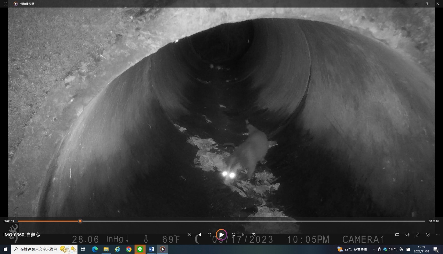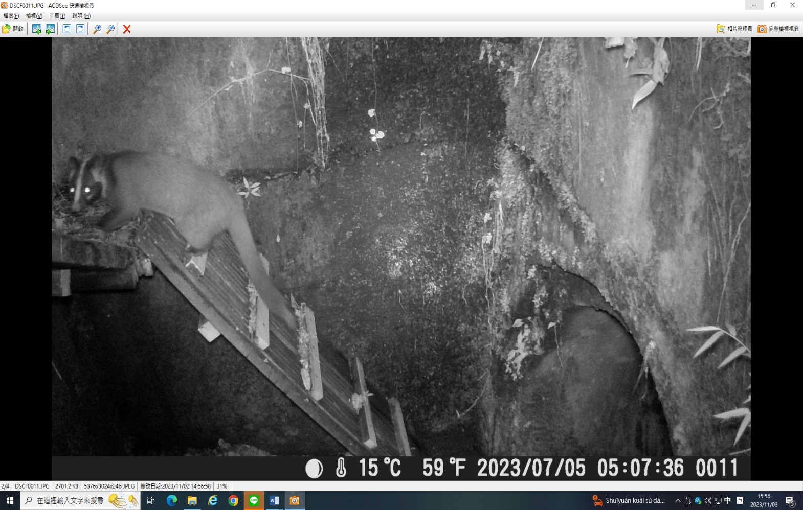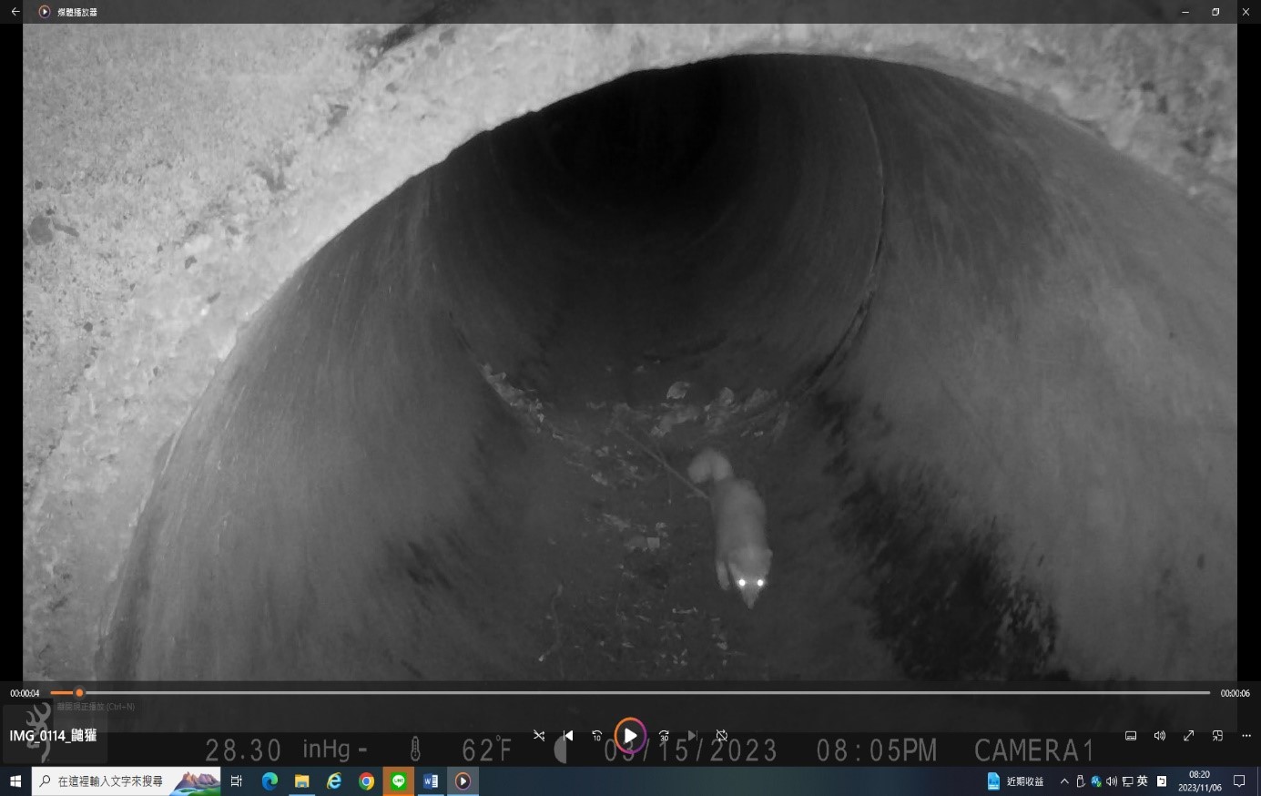 動物們藉由脫困通道上、下排水溝的集水陰井,並透過路面下排水涵管或箱涵,往來於林道兩側山坡,彷彿是城市裡的人行地下穿越道,複製到森林裡成了另類的動物穿越道。彷彿也聽到動物們這麼說:「車子這麼多怎麼過馬路啊?白鼻心們正在發愁!沒問題,來來來!跟我來!林業及自然保育署宜蘭分署為我們架設了一條安全過馬路的地下道喔!」山羌這樣說到。 在太平山國家森林遊樂區聯外道路(宜專一線)上,隨著國旅不斷的加溫,車潮川流不息,也增加了動物穿越車道的危險性。而林業保育署宜蘭分署自110年度起,即對於道路側溝與集水井,增設動物脫困通道,以協助誤入排水溝或集水陰井的動物們脫困,減少受困狀況發生。另外,為了確認此類通道能否被動物們接受,並觀察其使用的方式,以及蒐集不同物種的使用頻率等資訊,於是在已完成的動物通道附近,架設10處的移動式自動紅外線攝影機,來記錄動物的利用狀態。宜蘭分署意外的發現,動物們除了利用脫困通道上、下道路旁集水陰井外,也利用與脫困通道銜接的涵管或箱涵,作為安全穿越馬路的地下道,一場美麗的意外,協助了動物們穿越馬路的另類選擇。同時,也造就了排水涵管的新價值。 宜蘭分署經過約半年的紀錄,目前發現有至少有4種動物的穿越使用紀錄,其中包括:有「黃喉貂」、「白鼻心」、「鼬獾」和「山羌」等,都來到攝影鏡頭前露臉喔!宜蘭分署也將透過這次所蒐集到的資訊,持續辦理生態友善改善工作,創造太平山國家森林遊樂區不僅是國人遊憩的好去處,更是野生動物們的好居所。