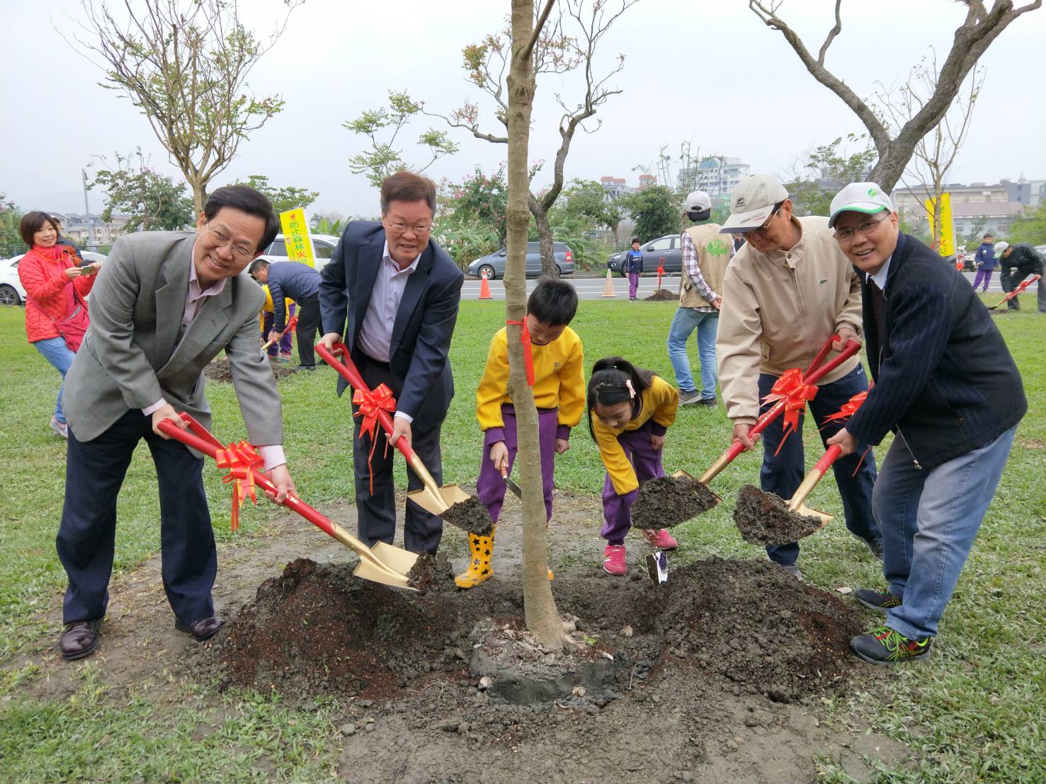 林務局羅東林區管理處與宜蘭縣政府107年3月9日(星期五)共同辦理「宜運景觀新風貌‧再現台灣原生綠」植樹護樹活動,在宜蘭運動公園種下的樹木象徵景觀新風貌,利用園區列管老樹及現有植栽傳達護樹重要,更希望藉由植樹護樹活動的推廣,讓民眾認識都市林的生態系服務所帶給社會大眾的效益。 宜蘭運動公園占地27公頃,除了運動休憩設施,還有大面積的樹林綠地,是縣民休閒運動最佳場所。羅東林區管理處處長吳坤銘表示,很多公共衛生研究都說明公園綠地對人類的健康是有好處,都市中樹林對於居民包括去除空氣汙染物、調節氣溫、改善微氣候等都有明顯的功效,甚至還提供了野生動物的棲息覓食環境,我們也應回饋給予樹木,保護使其健康生長。例如將不良或危險枝條修剪移除,可以讓樹木更強壯茂密也維護公共安全,施肥、清除周邊競爭雜草,可以改善土壤狀況使樹木根系生長健康,許多護樹的方法如果操作正確,除了獲得良好的植栽景觀,更能健全都市林功能。 本次植樹護樹活動種下苦楝、流蘇等適地的景觀樹種;由七星綠化基金會及羅東林區管理處國際認證的樹藝師帶領凱旋國小同學認識縣府列管雀榕老樹保育、台灣欒樹樹幹保護及危害樹木的紅膠蟲;並贈出600株的家戶綠美化苗木。在植樹節我們不只要種樹,更照顧好種下的樹。