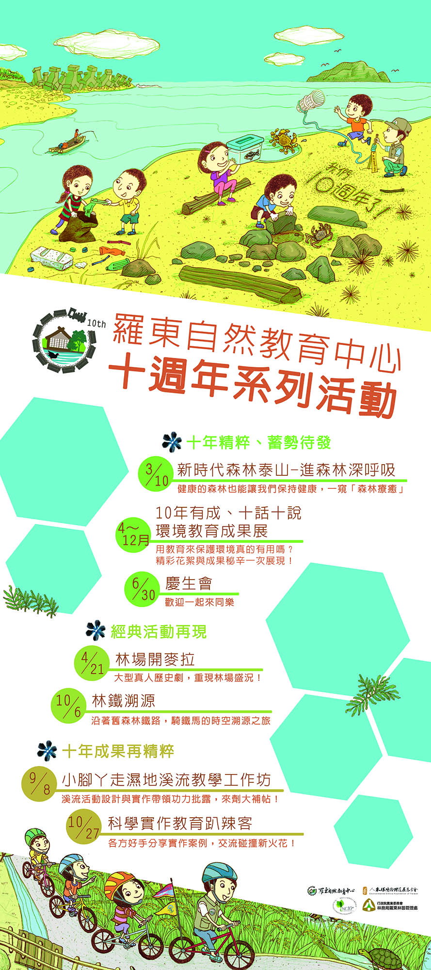 羅東林管處自97年7月成立羅東自然教育中心,走過10年的歲月,發展多套環境教育課程,一路陪伴孩子們成長,實現林務局自然教育中心「師法自然,快樂學習」的宗旨,3月10日在羅東自然教育中心辦理10週年系列活動啟動說明會,現場聚集數十位關心中心環教課程服務及發展的朋友們,共同回顧這10年來的成長與轉變,並介紹一系列精采活動。 本次啟動說明會,首先回顧羅東自然教育中心過去10年的發展歷程,接續介紹一系列精采活動,包含「10年成果策展」及「慶生會」與所有陪伴自然教育中心成長的好朋友們共同歡慶;經典活動再現的「林場開麥拉」及「林鐵溯源」等,喚起民眾對於昔日羅東林場輝煌的回憶及建立在地孩子們認識家鄉的歸屬感;最後還有不藏私的「10年成果精萃工作坊」,邀請關心環教的朋友共同交流分享經驗等,一系列活動精采可期。 羅東自然教育中心成立至今10年,所規劃的環教課程及活動除了所在的林業文化園區外也延伸至太平山、苗圃、蘭陽溪沿線等環境場域中,是親子、一般民眾、學校與機關團體參與環境教育課程的首選。迄今已辦理有2,529場,服務78,726人次。在優質的環教推動成果下,於101年5月取得環境教育設施場所認證,同年榮獲第一屆宜蘭縣環境教育獎特優,102年再榮獲第一屆國家環境教育獎優等獎。歡迎各界至以下網站參閱相關活動資訊,或來電羅東自然教育中心(03-9540823)洽詢。 羅東自然教育中心部落格 人禾環境倫理發展基金會網站