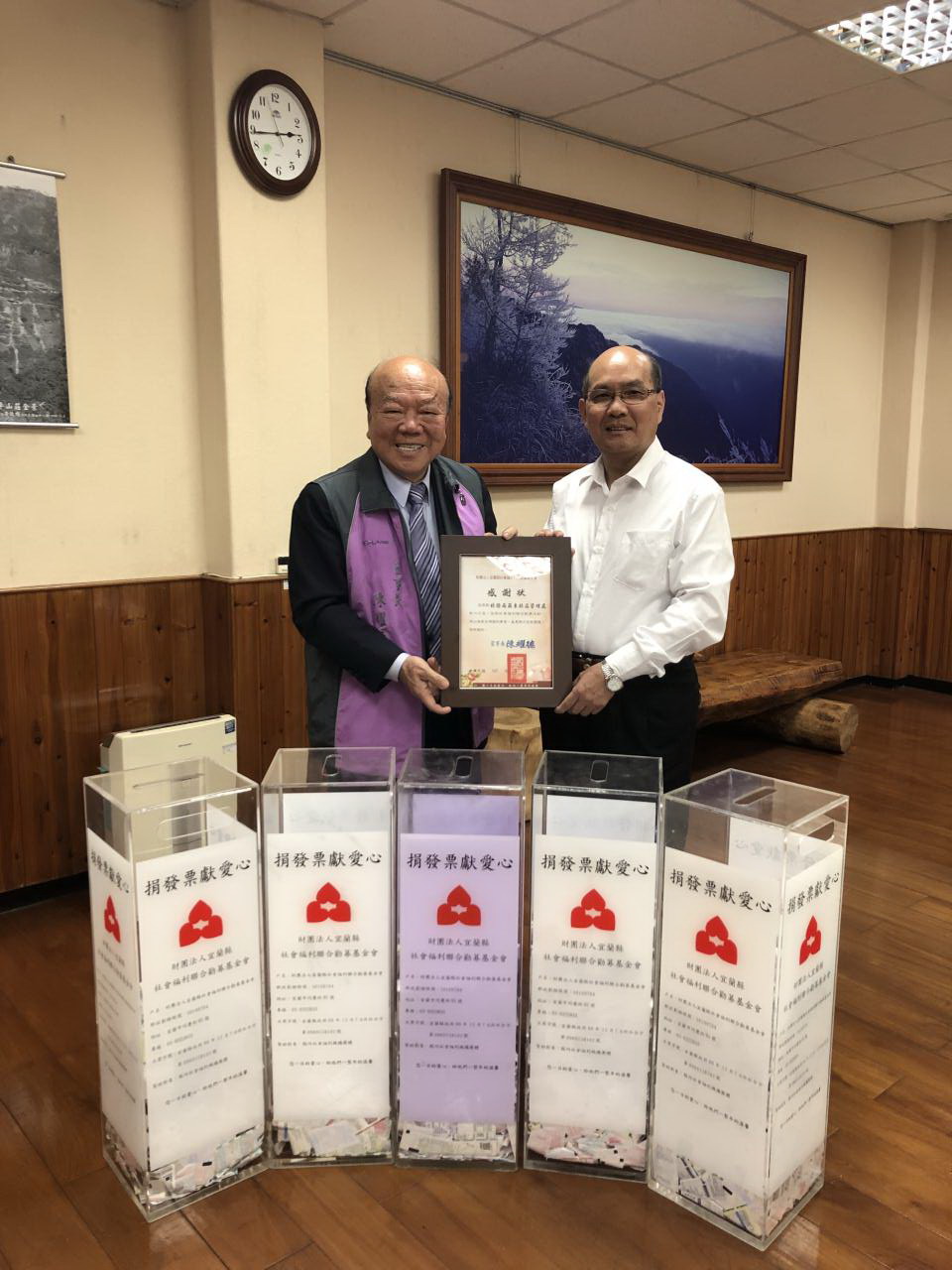 羅東林區管理處107年植樹月期間,配合各機關團體辦理30場的贈苗活動,民眾以3三張票兌領1株家戶綠美化苗木,截至3月底共贈出一萬九千餘株樹苗,所募集的發票將近六萬張轉交財團法人宜蘭縣社會福利聯合勸募基金會,讓民眾綠化家園的同時,也能同時做愛心,照顧弱勢團體。 林務局羅東林區管理處為推廣植樹護樹觀念,於每年3月份配合各機關團體辦理植樹公益活動,活動中最受喜愛的贈苗,也以發票及自備購物袋的方式兌領,讓民眾做愛心、顧環境。截至3月底已辦理有32場一系列的植樹護樹活動,贈出桂花、杜鵑、含笑、樹蘭等家戶綠美化苗木超過19,000株,所募集的發票將近6萬張於3月30日轉交財團法人宜蘭縣社會福利聯合勸募基金會,讓民眾護樹植樹與愛心結合,除可綠化家園提昇生活環境品質,又能兼做愛心,可以說是一舉多得。