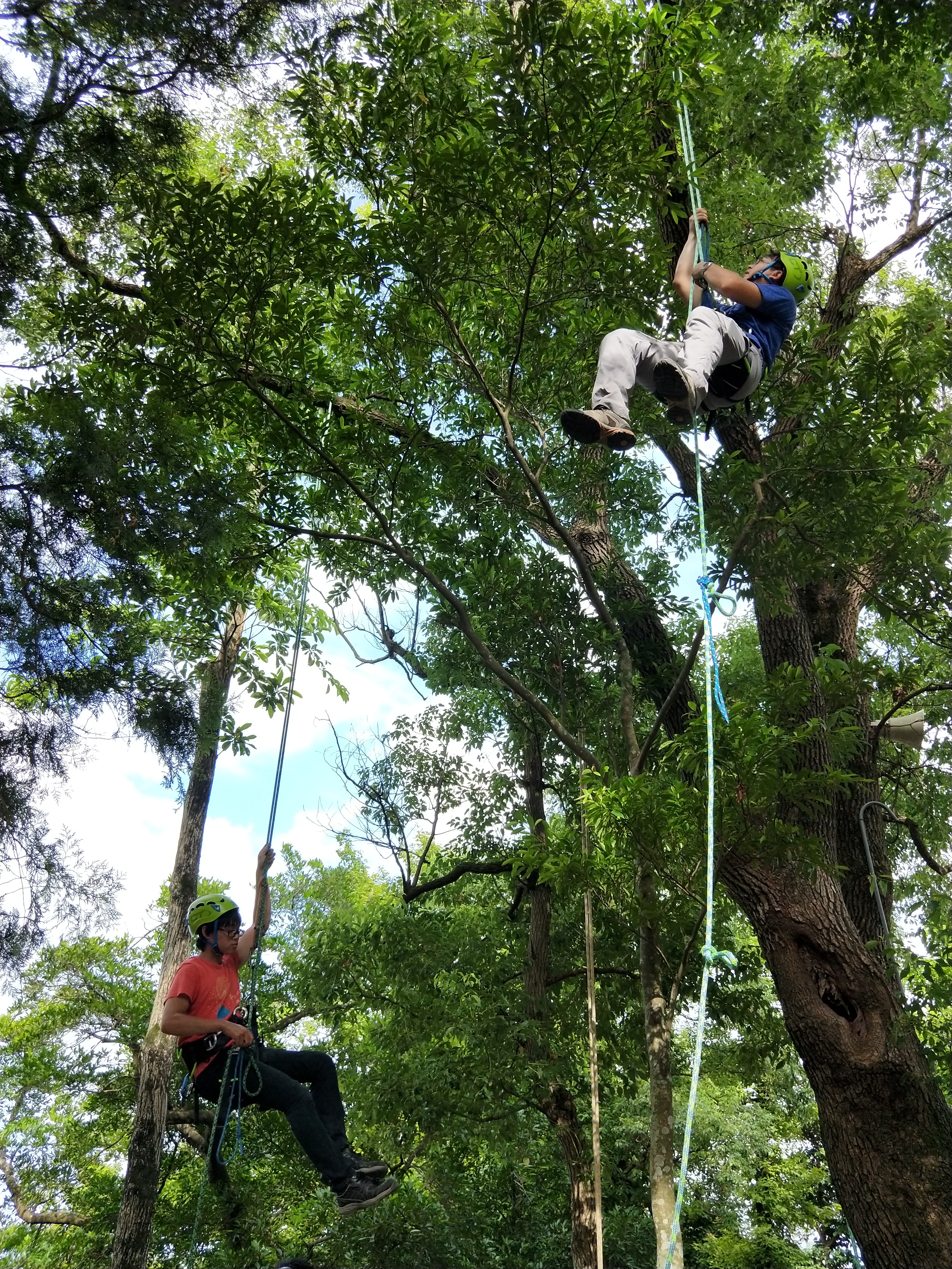 林務局羅東林管處將於21日起,連續3週六日在羅東林業文化園區針對員工辦理攀樹訓練課程,本次課程林管處邀請到ISA(國際樹藝協會International Society of Arboriculture)國際認證攀樹師團隊進行教學訓練,從攀樹器材與防護裝備的選擇,場地與樹木檢查,攀樹繩的安裝,到攀樹實務技巧等,林管處的同仁將利用6天的假日時間,學習完整的攀樹技術,以確保未來從事樹上工作時的安全,並降低攀樹工作對樹木的影響。 職業攀樹工作在國外早已行之有年,相關的概念及技術近年來也陸續引進台灣,過去傳統的林業工作中,為了培育優良樹木也常須利用攀樹採集高大母樹的種子,以繁殖出優質的苗木,營造健康的森林,但過去大多利用打鋼釘的方式進行攀爬,對於工作人員的安全及樹木保護都較為不利;除此之外,在處理影響人民生命財產安全的危木時,也常會遇到高空作業車無法到達的情況,這時往往也需要依靠攀爬樹木進行工作,透過本次攀爬樹木知識與技巧的訓練,對林管處爾後執行林業工作的同仁,將更能以有效率且安全的方式進行各項工作。 攀樹不僅是一項專業的樹木工作,也是近年來新興的一項環境教育體驗活動,作為樹木工作最前線的林管處員工,除了透過本次訓練學習新知之外,也讓同仁能站在不同的高度,重新看待為之努力的這片美麗土地,以更加深化心中保育環境的熱忱。