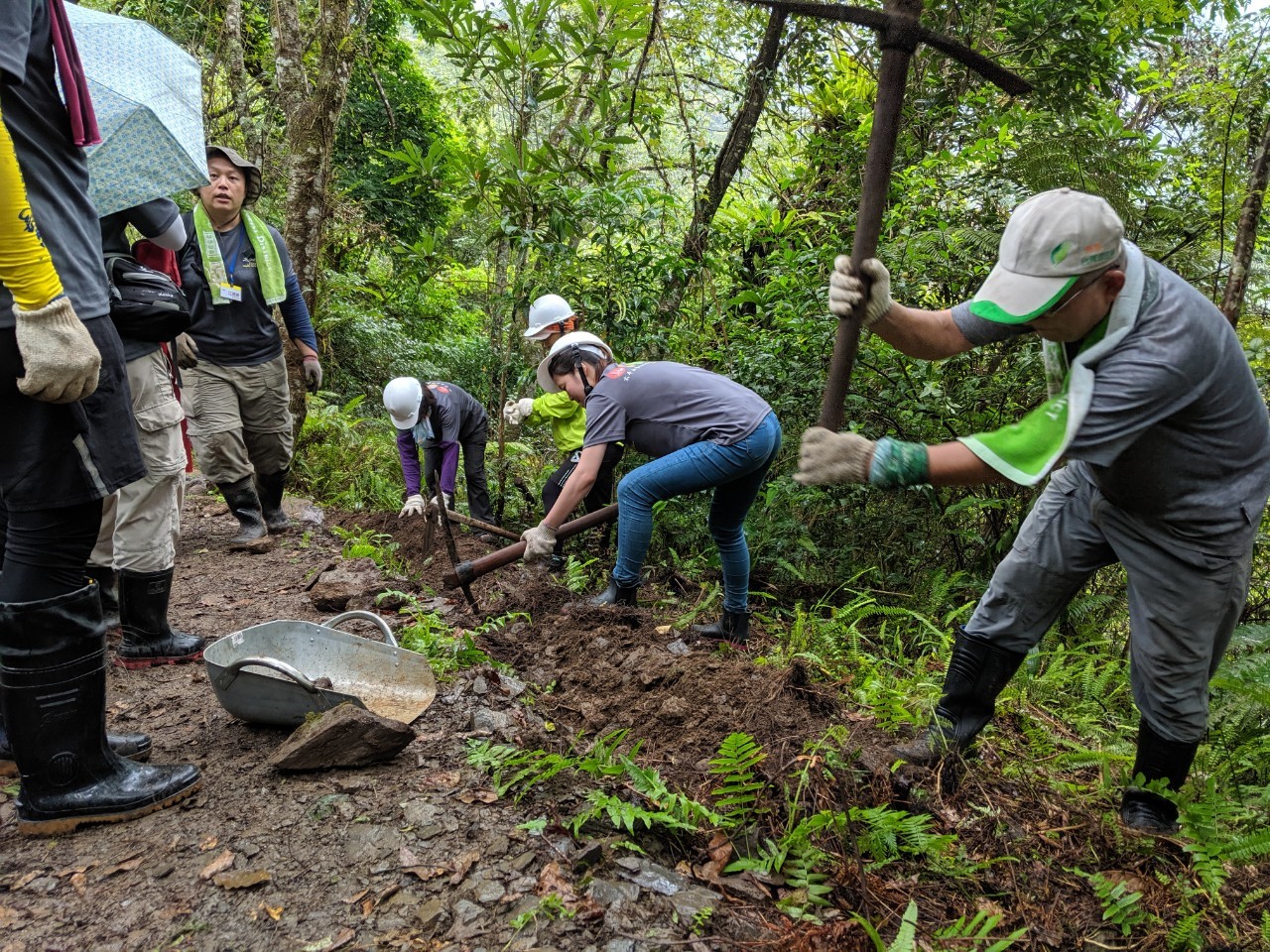 林務局羅東林區管理處於108年6月22~24日一連三日在太平山國家森林遊樂區的鳩之澤步道辦理「手作步道工作假期」,邀請太平山生態旅遊策略聯盟「台北市出去玩戶外生活分享協會」志工 、「羅東自然教育中心」環教師、「台灣千里步道協會」步道師及羅東林管處同仁等,共計41人,透過公私協力一起在櫻花造林地內打造一條小徑,讓野草叢生的土坡變身為具生態工法的「櫻木花道」。 推動手作步道係林務局推動之重要政策之一,手作步道就是以手工的方式維護步道,以因地制宜、就地取材,用適當工具施作以避免傷害環境,來思索步道的設計、施作與維護,與自然環境深度結合。羅東林管處自105年以來每年皆持續推動「手作步道工作假期」,設有手作步道基地營及對外招募志工培訓,羅東林管處向來重視於此政策之推動,這次手作步道訓練課程已是今年第3場次,這場次除了17位步道志工熱情參與外,更由羅東林管處賴錫祿處長率領同仁參與,讓參與之志工和林管處同仁一起合作打造一個符合多數人都能體驗的自然步道環境,堪稱為公私協力打造自然步道的典範。 鳩之澤自然步道旁山櫻花林相廣達2.5公頃,山櫻花大樹胸徑已達30~40公分,於每年1~3月嶄露滿山紅顏,深獲民眾及攝影愛好者前往鳩之澤拍照,以往只能遠眺,民眾未來將能體會行走於櫻花林下之美,羅東林管處號召志工及同仁,藉由手作步道的方式,依現有地形、土壤及植被來設計步道路線,使用櫻花經颱風所吹倒之枯倒木作為步道邊坡,並以羅東林管處自產之柳杉疏伐木及現地石頭作土木階梯,加上豐富多樣且專業的課程,由步道師、獸醫師及樹藝師來授課,讓學員可以將整個生態及環境知識帶回家。參與學員表示除了學到如何手作步道以外,更重要的是享受與自然環境與動植物生態互動。後續羅東林管處將於108年9月20-22假南澳古道辦理手作步道工作假期,好讓更多山林愛好者都有機會親身體驗手作步道的樂趣。