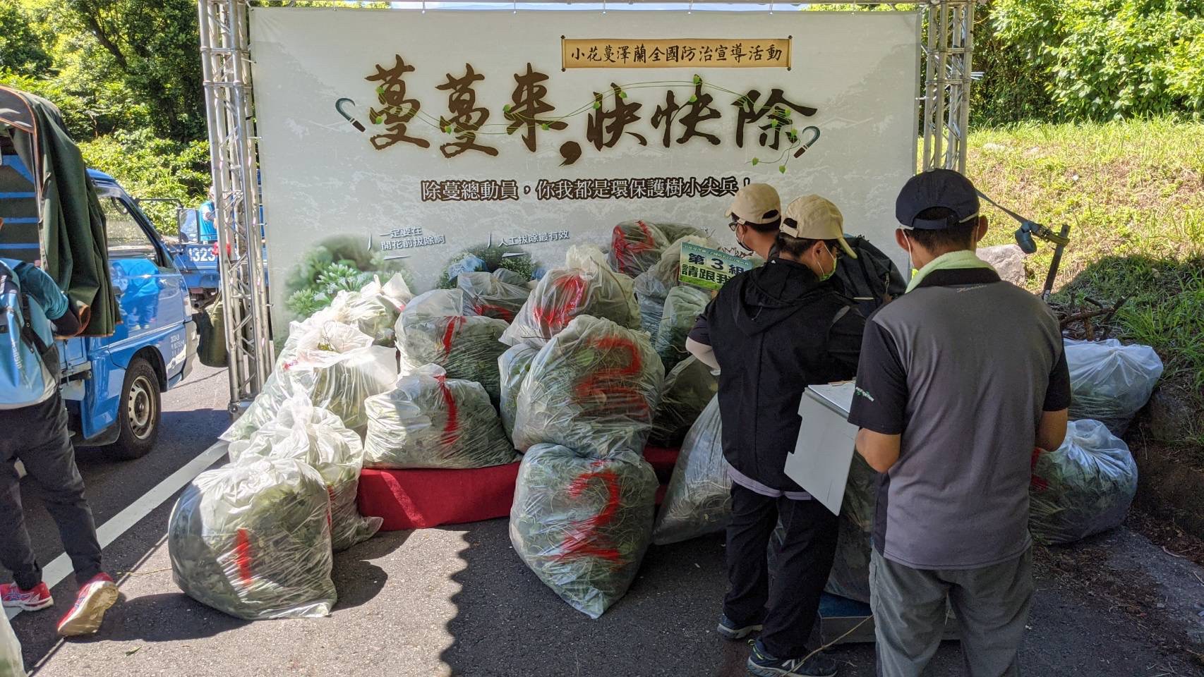 響應由羅東林區管理處舉辦的「蔓蔓來快快除-小花蔓澤蘭全國防治日宣導活動」,今日在朝陽山海生態村旁集合了150位熱心夥伴,協力為我們的山海森活好環境來除「綠癌」,還給周遭樹林一片清新。 本次活動由羅東林區管理處處長蕭崇仁的帶領下,結合朝陽社區發展協會、蘭陽城鄉美學基金會志工及國泰人壽慈善基金會企業志工等熱心民眾, 最終完成清除390公斤小花蔓澤蘭的豐碩成果 每年10月開始到隔年2月是小花蔓澤蘭的開花結果期,一旦產生大量種子將會隨風飄散,使蔓延情形迅速惡化,所以在開花前是小花蔓澤蘭防治的黃金移除期。 平日間如民眾發現小花蔓澤蘭的蹤跡時,移除最好的方法就是連根拔除後以塑膠袋包好,避免其藉由旺盛的無性繁殖能力重新生根,並可在收購時間內交給各收購點工作人員。羅東林區管理處於台北、礁溪、冬山、南澳工作站全年常設收購點,作業時間為每月1號及15號上午9點至12點(遇假日順延至下一工作日),小花蔓澤蘭植體將以每公斤新台幣5元價格收購,歡迎民眾一起清淨我們的林野,讓台灣生態更美好!