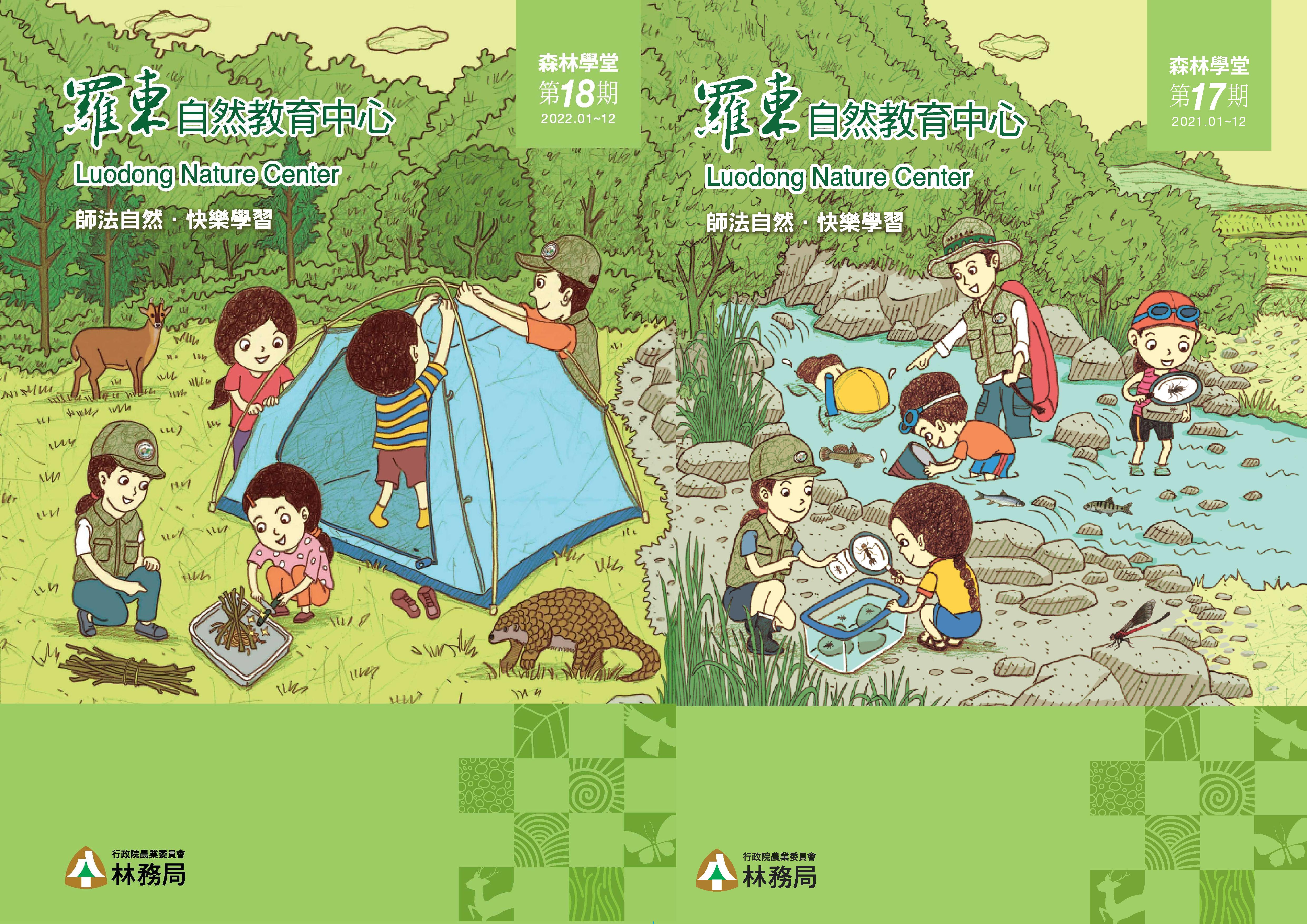 林務局羅東林區管理處轄下羅東自然教育中心自97年成立以來,提供專業的林業與環境教育課程,迄今服務已逾10萬人次,每年羅東自然教育中心都會推出課程手冊,介紹當年度提供的課程內容,手冊封面設計皆以課程活動做為主題,去年以「小腳ㄚ走濕地-上游段」為發想,今年則「林場小學堂-野外求生週」為主題,呈現課程中生火及野外紮營的部分,每期的課程手冊都可以相連拼接在一起,相當具有巧思,值得蒐集。今年度的課程手冊改以線上電子版, 歡迎有興趣的朋友下載使用網址:http://luodong-nec.blogspot.com/2022/01/202218.html。 111年羅東自然教育中心的課程在「戶外教學」部分,除了廣受好評的「池畔日誌」、「小小大森林」及「水生家族」之外,新推出適合國高中生參加的「森林共學團」,以林業文化、森林經營、森林利用、森林療癒與森林生態五個面向,結合宜蘭在地文化、操作體驗與職人帶路等元素,設計一系列課程,透過長時間的學習規劃,幫助建構完整的林業知識及學習歷程。在「主題活動」部分,除了每年一開放報名立刻額滿的「林場小學堂」外,也推出以成人為對象的森林療癒體驗活動「玩聲音聽世界」及「森林品茗書香趣」,如果不想做選擇全部都要,也有客製化「特別企劃」量身打造專屬課程,更多的課程資訊及介紹都在課程手冊裡,歡迎多加下載利用。 想獲得更多課程資訊請見羅東自然教育中心FB粉絲頁(https://www.facebook.com/luodong/)、 林務局羅東林區管理處官方網站(http://luodong.forest.gov.tw)、 或電洽羅東自然教育中心(03-9540823)、羅東林區管理處育課(03-9545114)詢問。