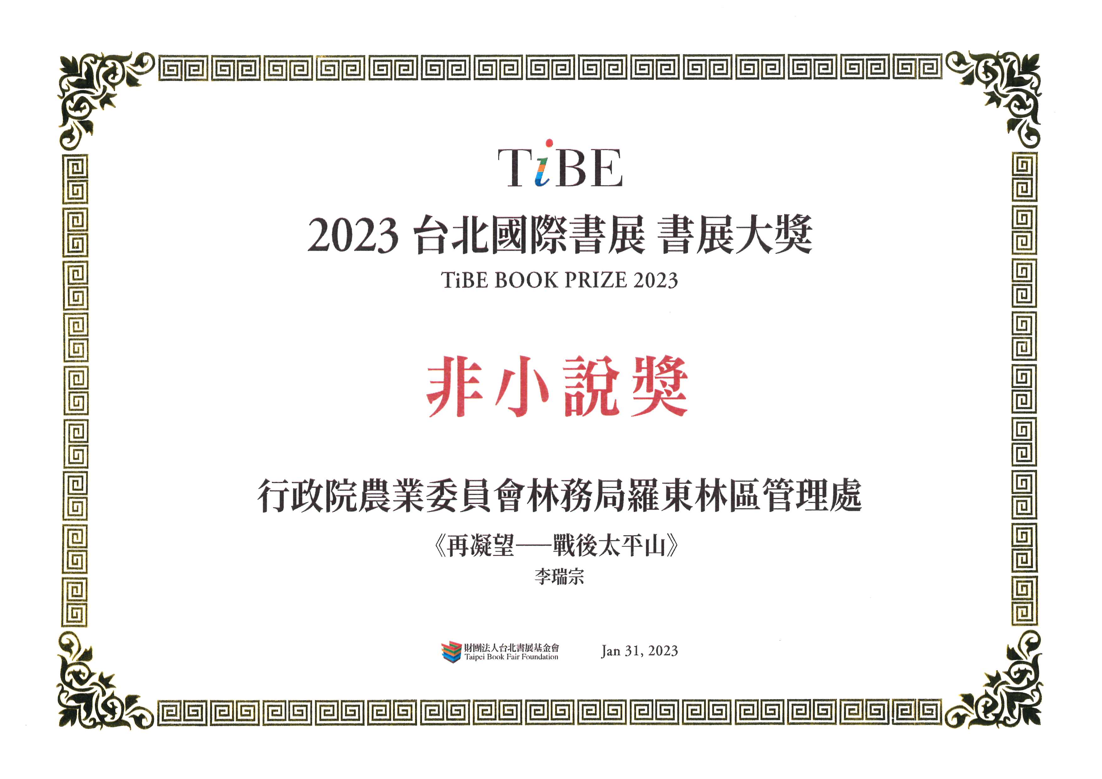 林務局羅東林區管理處與古道專家李瑞宗老師合作出版的《再凝望-戰後太平山》入圍今(2023)年台北國際書展大獎,並於 1月31日至2月5日在台北世界貿易中心展覽一館正式開展,入圍作品有專櫃展示,歡迎大家前往參觀。 2023年台北國際書展總計共846件作品報名,其中競爭最激烈的「非小說類」多達410件參賽,僅有10本入圍;羅東林區管理處所出版的《再凝望-戰後太平山》為其中之一;該書於去(2022)年亦獲得國史館臺灣文獻館「獎勵出版文獻書刊」優等獎、文化部金鼎獎優良出版品,今連獲三獎殊榮之肯定。 羅東林區管理處經營的太平山國家森林遊樂區是國內知名的森林育樂場域之一,有著中高海拔的自然四季美景,吸引許多民眾賞遊,早期也與阿里山及八仙山並列為臺灣三大林場,因此有著豐厚的人文歷史。羅東林區管理處希望民眾能深入了解太平山的歷史與職人故事,力邀知名作家李瑞宗老師合作出版《再凝望-戰後太平山》,讓讀者有機會看見許多未曾公開的太平山林場工作、生活故事及影像,值得購買及典藏。本書姊妹作《原風景-日治太平山》已於今年初出版,於2023年2月10日於羅東林業文化園區-日光山森林茶書苑辦理《原風景-日治太平山》第3場新書發表會,歡迎大家報名參加。 相關資訊 1. 2023年台北國際書展相關資訊 2. 羅東林業文化園區-日光山森林茶書苑《原風景-日治太平山》新書發表會 3.《再凝望-戰後的太平山》購書資訊 國家書店