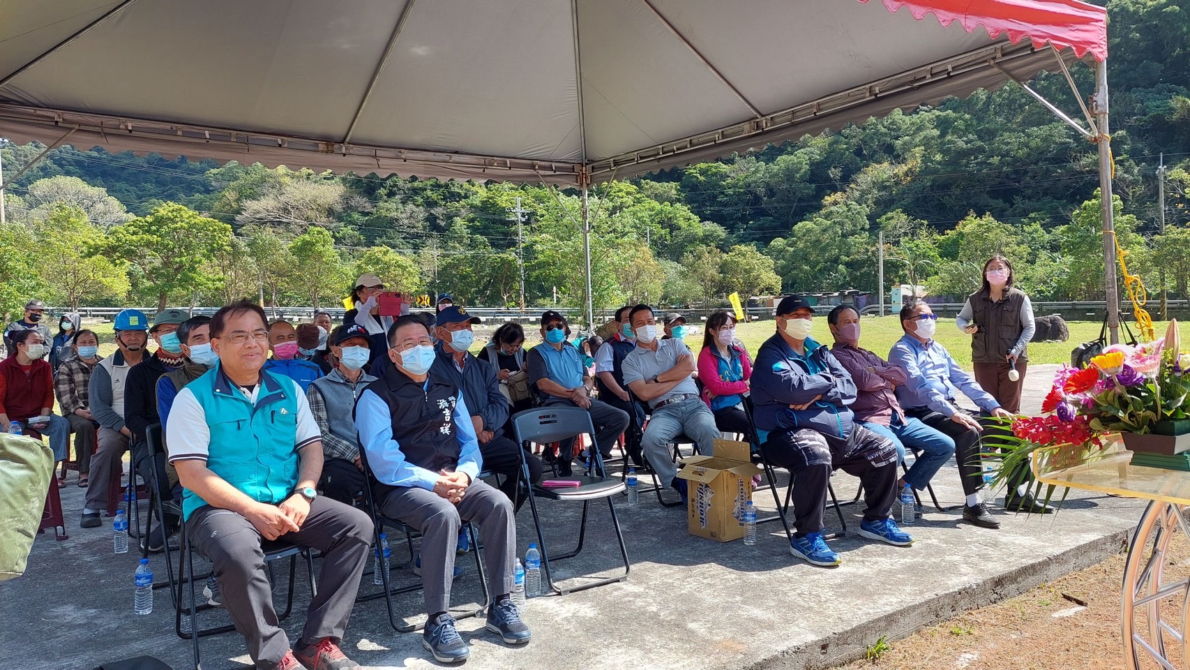 林務局羅東林區管理處與南澳鄉公所於112年3月10日(星期五)上午9:30在南澳碧候村運動埸聯合舉辦「112年度植樹節-森活圈」贈苗活動,羅東處鄧副處長江山帶領林管處及南澳工作站同仁與南澳鄉長李勝雄帶領各村長、南澳鄉民代表會副主席林德富帶領各代表、在地鄉親共同參與,活動在迎賓舞中熱鬧登場並由李鄉長勝雄等一同栽植山櫻花等樹苗,讓森林保育向淺山平原地區延展,構築國土綠色廊道,提供物種多樣生態棲所。除可美化居家環境與庭園外,還可營造美好舒適的森活圈。 今日植樹活動由林管處偶像團體-肖楠哥、櫻花妹及打火勇哥帶領大家認識樹種並解說種樹技巧,讓南澳鄉親種下樹苗共同營造城市森活美學,為愛護地球、植樹造林盡一份力量,羅東處並提供楓香、杜英、桃金孃、烏來杜鵑等台灣原生樹苗共300株,為促進南澳發展觀憑112年度3張發票兌換1株苗木,發票將全數捐予宜蘭縣社會福利聯合勸募基金會。