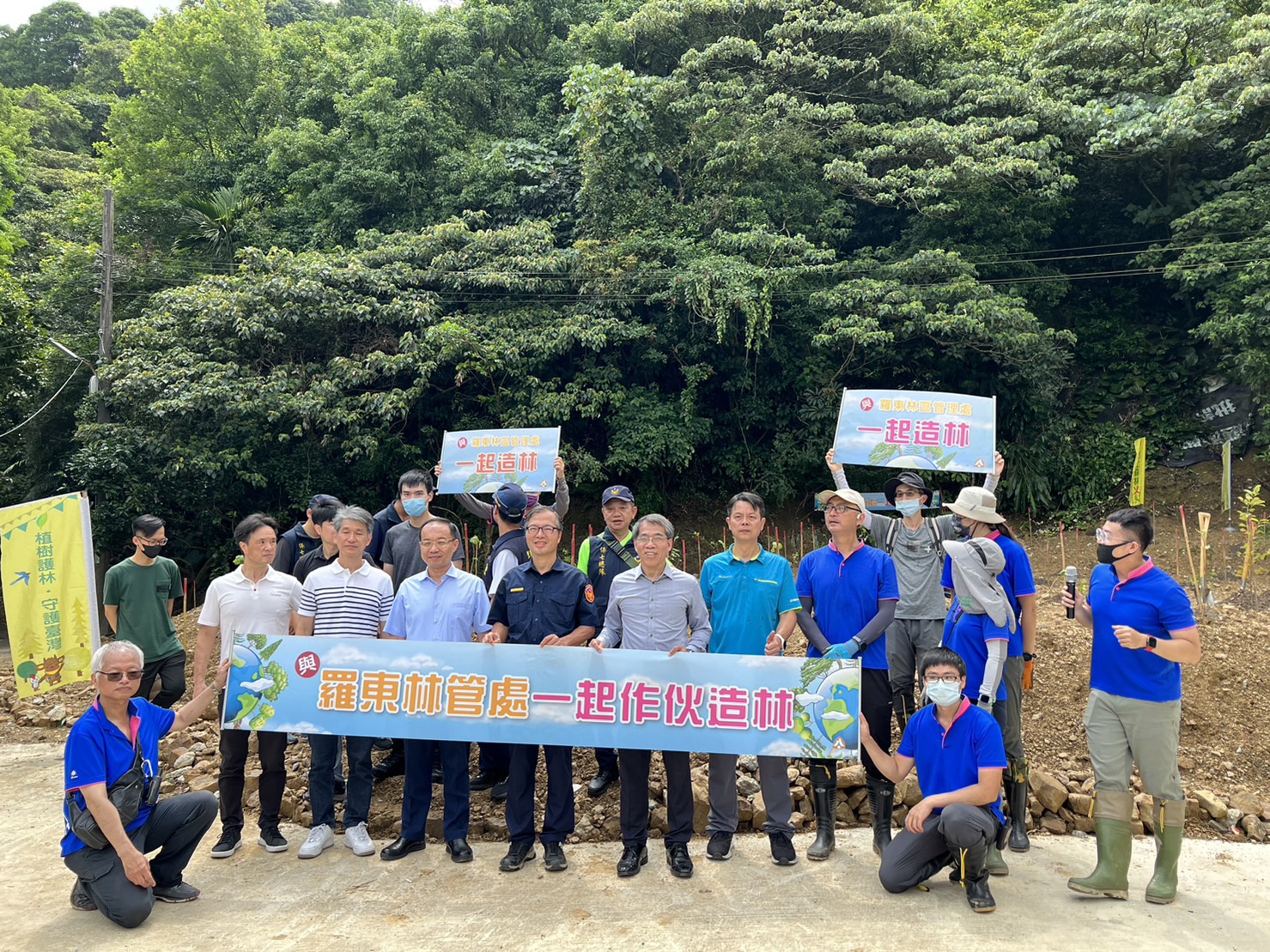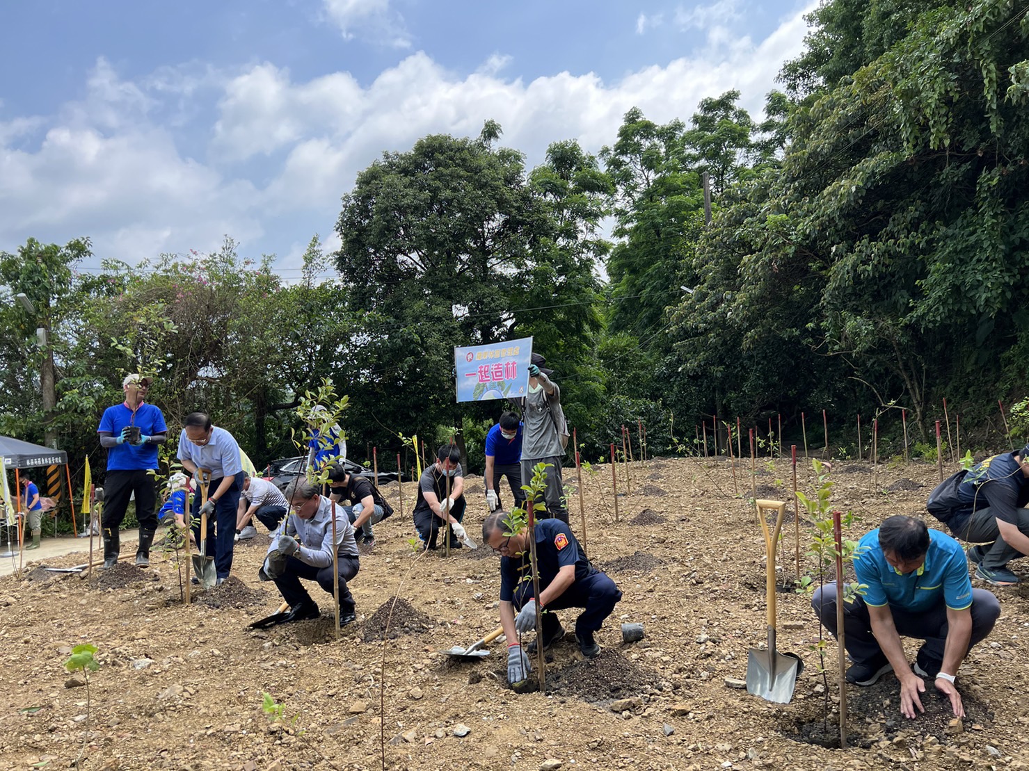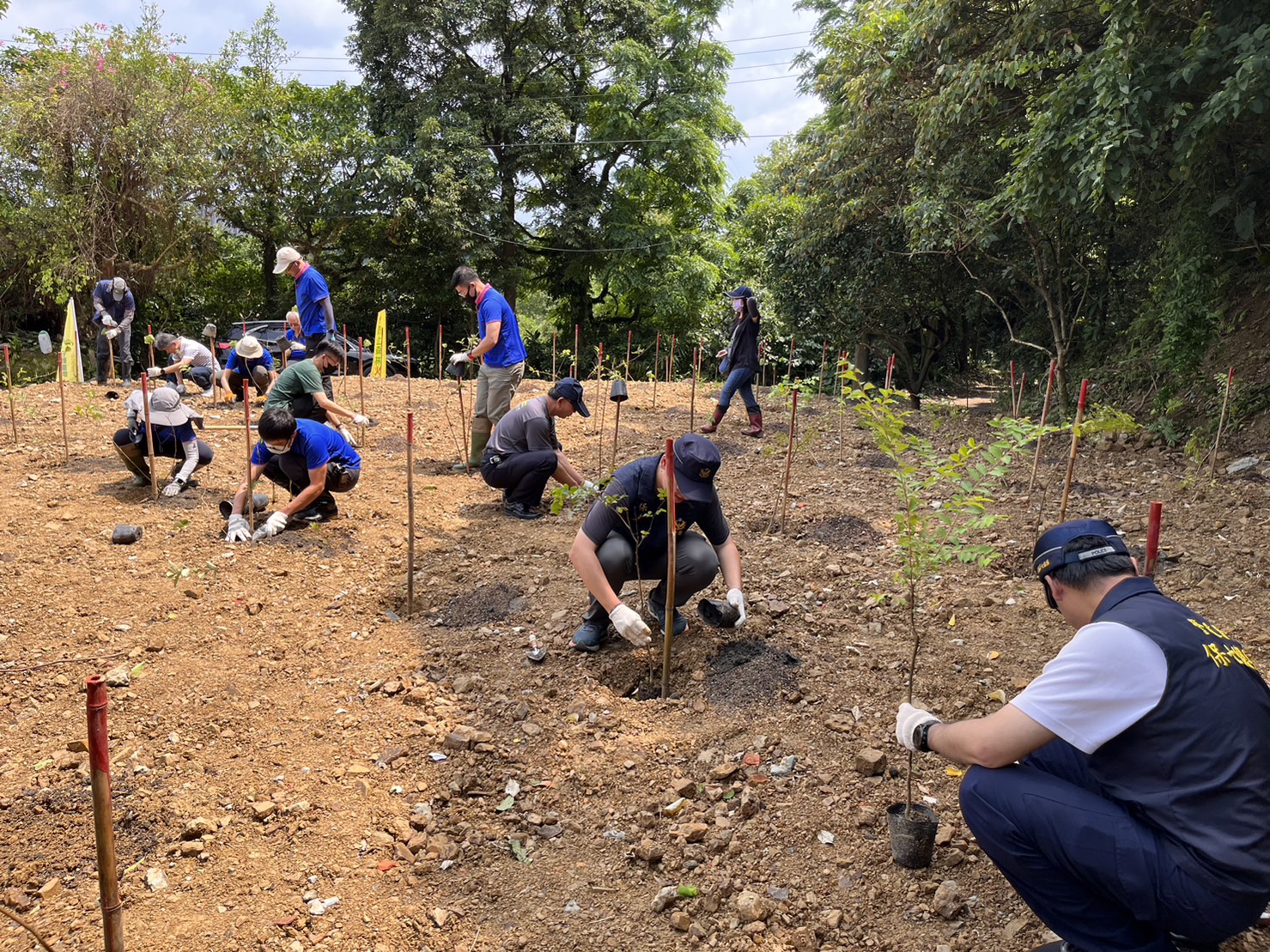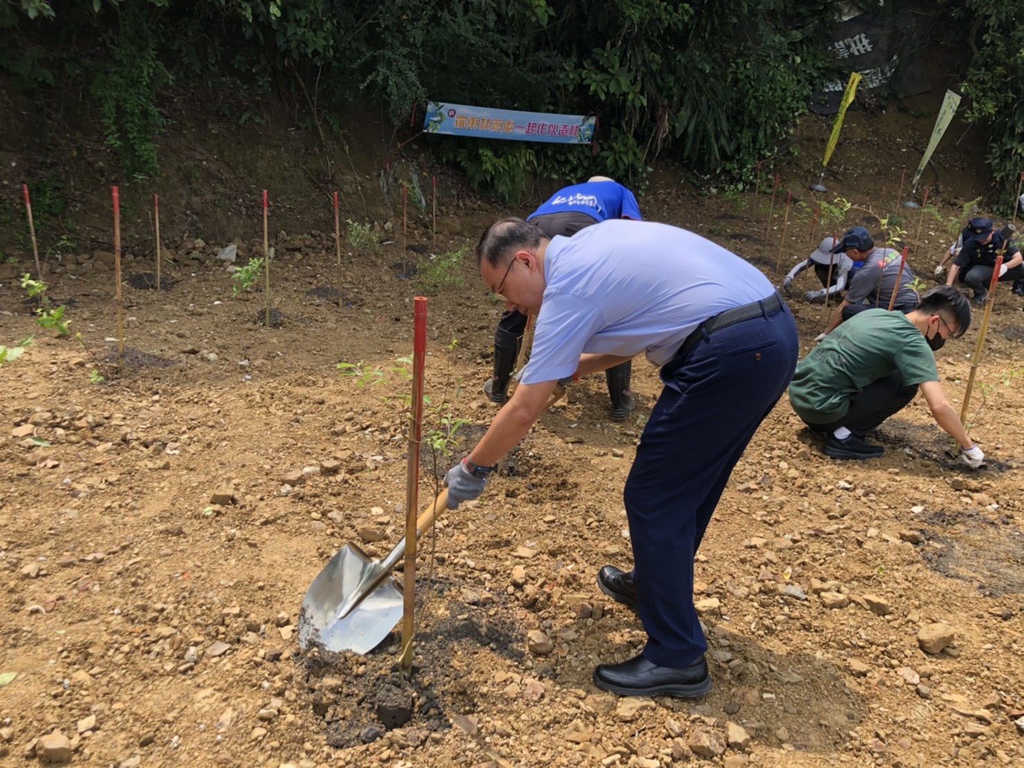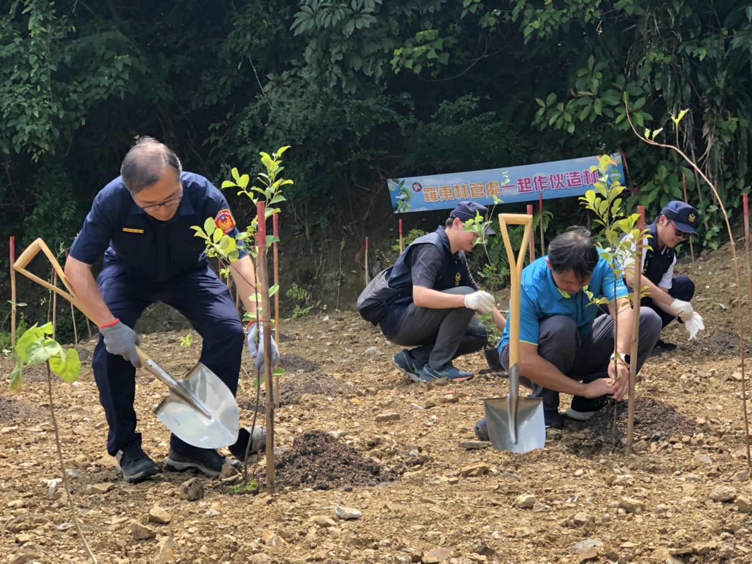 林務局羅東林區管理處今日攜手內政部警政署保安警察第七總隊第四大隊及基隆市警察局第二分局,於占用收回的國有保安林地上植樹造林,期早日回復該區保安林整體功能,以保護國土及維護民眾安全。 基隆市信義區的土砂捍止國有保安林內,遭東安山太陽廟違法占用,該保安林主要功能是為減少崩塌發生,維護土石穩定,以保護下游地區民眾之安全,經羅東林區管理處循民事訴訟等司法程序,終於今年3月間配合基隆地方法院民事執行處進行強制執行,並與保七總隊四大隊及基隆警察局第二分局合力協助,已將占用建物拆除完竣,並在今日(2日)一同於收回保安林地上栽種台灣原生種紅淡比、九芎、大葉溲疏、山芙蓉等適合當地生長之樹種,除展現維護國土保安之決心外,更期待小苗逐步長大成林後,能恢復綠意盎然之景觀及保安林既有之生態功能。 羅東林區管理處表示,保安林為國土保安及民眾公益所設置,且為全體國民所有,個人切勿於國有保安林地內進行墾殖、搭屋等占用行為,以免觸法。