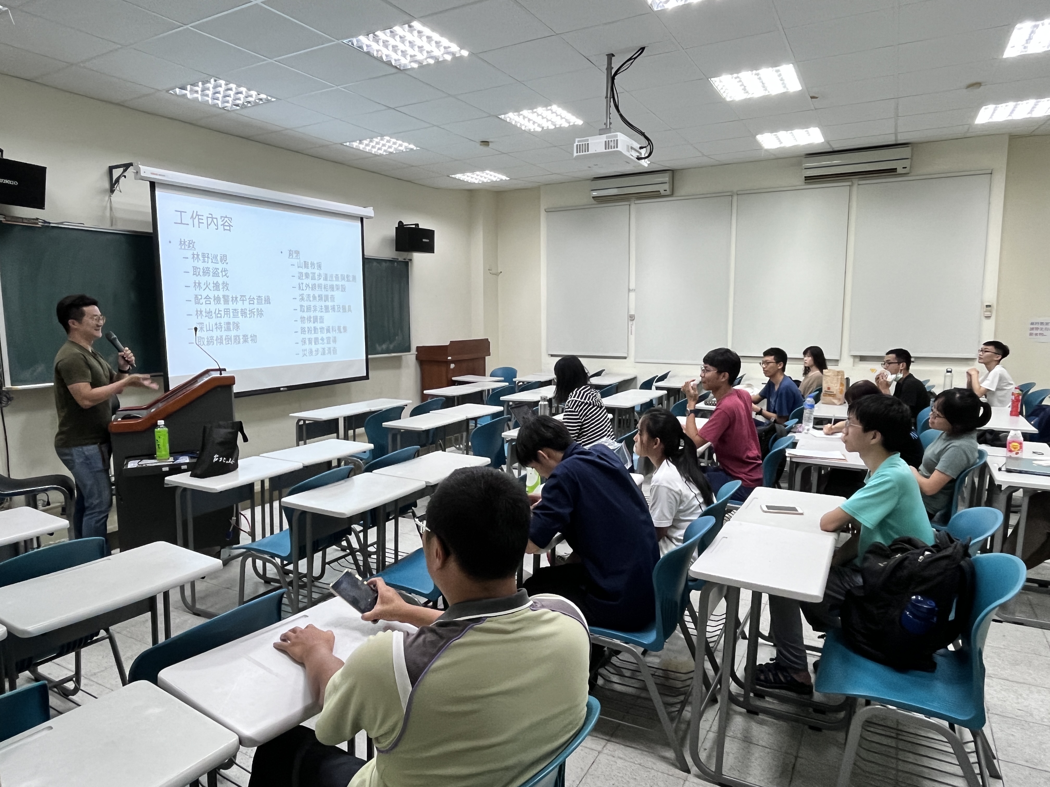 為了守護山林珍貴資源,林務局羅東林區管理處與台大登山社透過社區林業計畫的合作,由曾榮獲優秀森林護管員的李孝勤,傳授山林巡護的技巧與生態監測的經驗,希望藉以公私協力的方式,共同守護山林的行列,及提高「見警率」嚇阻不法行為。 台大登山社是該校各系所喜愛登山的成員組成的社團,平常攀登國內各登山路線,社員經驗相當豐富。今年透過林務局社區林業計畫,向羅東林區管理處申請巡護具有豐富森林資源及人文歷史的太平山區5條深山路線。為了讓學生在了解林務局深山特遣工作內容及安全,並由羅東林區管理處曾獲優秀森林護管員的李孝勤前往台灣大學分享,將山林巡護工作內容、動植物生態調查與紀錄,還有山區安全注意事項(如:遭遇山老鼠(盜伐者)避免正面衝突,做到「通報」即可,藉此降低風險。)等經驗提授予學生,並配合相關林業政策、如生態綠網、林下經濟等主題之影片及教材,加深印象。 羅東林管處期許藉由公私協力的合作,讓學生於體驗登山活動的過中,對森林生態及人文歷史都能更加瞭解,同時協助守護山林,提升貴重林木生育區域的能見度,嚇阻不法行為的發生。