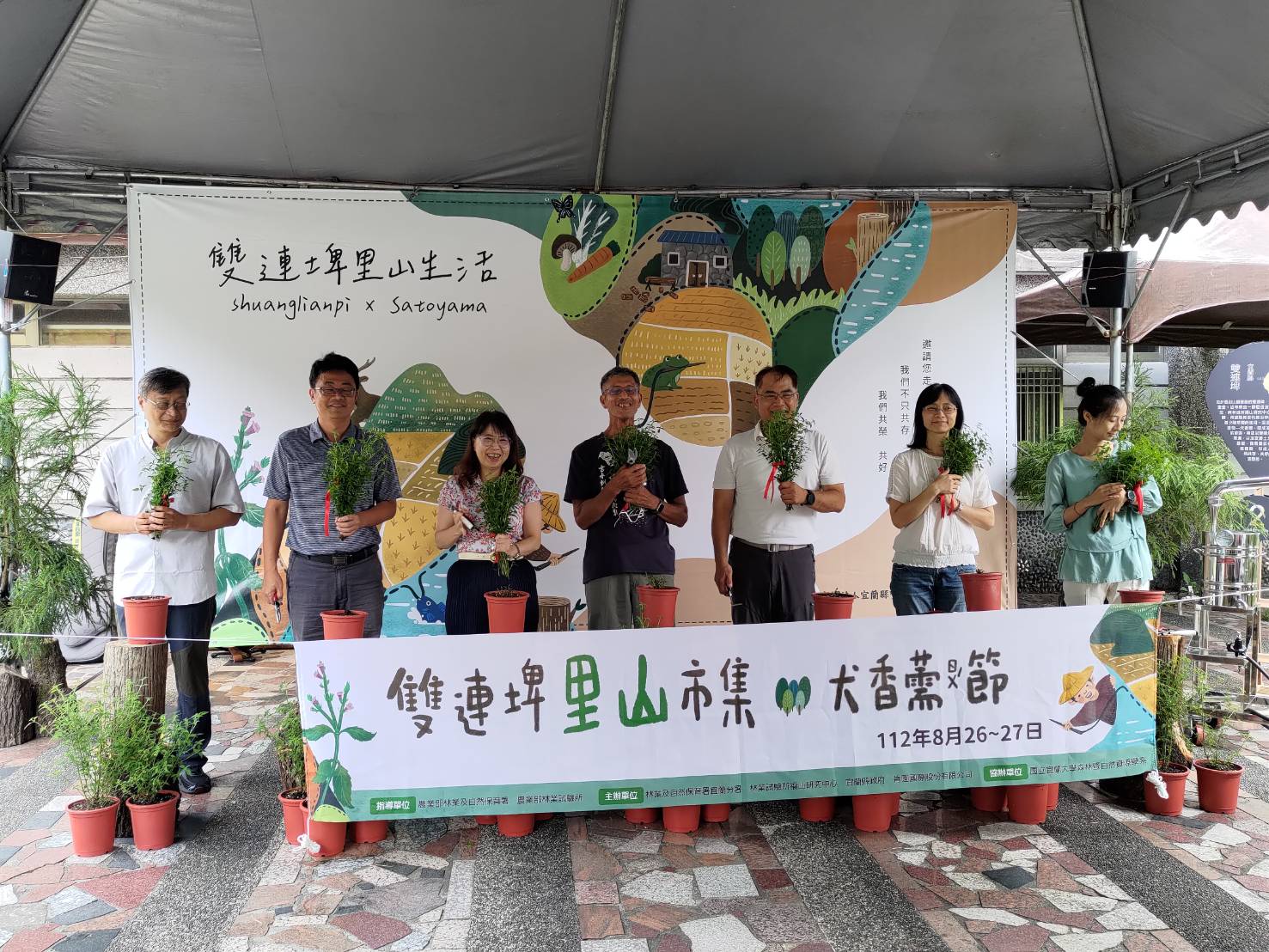 「雙連埤里山市集-犬香薷節」 在8月26日(六)登場,活動為期2天,不僅為參加者帶來歡樂時光,透過市集活動傳達里山倡議的精神,讓社會各界關注人與里山生態環境互動關係及生態系之惠益分享。本次活動由林業及自然保育署宜蘭分署聯合林業試驗所福山研究中心、宜蘭縣政府、肯園國際股份有限公司、宜蘭縣雙連埤地區永續發展協會辦理,以整個雙連埤村落為市集,結合當地原生植物「犬香薷」來展現里山環境的生態價值。 活動開幕設計以獨特剪綵之儀式,以今年是雙連埤犬香薷擴大栽種的第一年,貴賓們手持修枝剪,將盆栽中的「犬香薷」剪下,象徵著採收今年第一批植株及這次活動的開始,在各單位的陪伴下,也預祝今年的收成一切順利。活動現場,特別邀請到宜蘭縣三星國中視覺藝術石乃丰老師自行作詞作曲,現場彈唱台語主題歌曲「里山个囝仔」,以歌曲唱出雙連埤豐富的環境和人與環境共榮共好的願景,傳達居民對里山的期待。市集結合雙連埤地區的資源,及在地農民和村民的參與,呈現雙連埤山村生活模式及里山生態,現場以家屋為據點,設有21個特色攤位展售藤編、調酒、農產品和藝文活動,包括「埤ㄟ時光影院」播放以當地場景拍攝之電影及紀錄片、「古水圳修復分享畫展」、「插花藝術表演」,及木工車床手作DIY等,讓參加者從不同角度感受到里山的魅力。 林業及自然保育署宜蘭分署表示藉由本次活動傳達人類生活也可兼容保育生態棲地的理念,喚起大眾對於生態保育的關注,人也是自然環境的一份子,永續的生活有賴自然資源的維護,一起共同保護臺灣寶貴的生態環境。