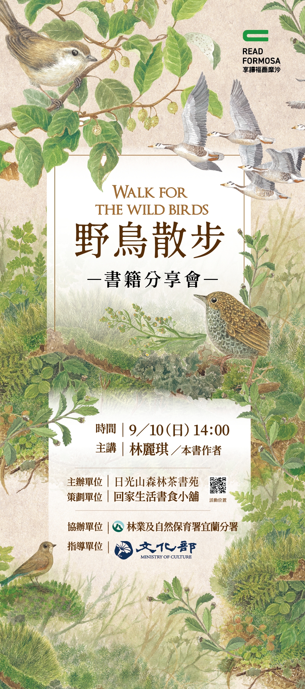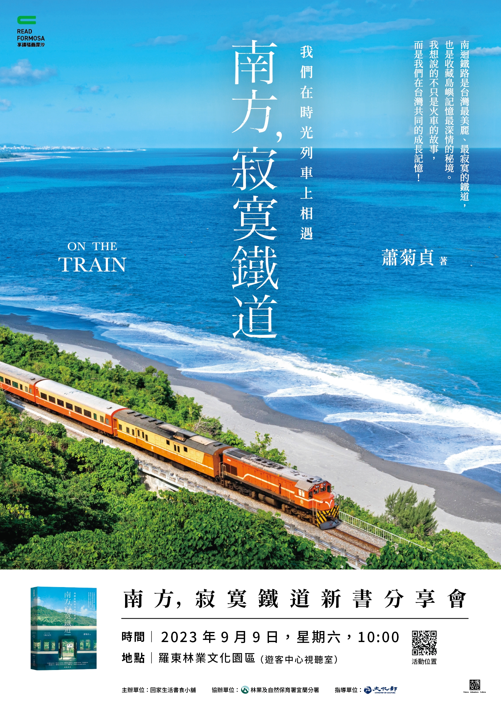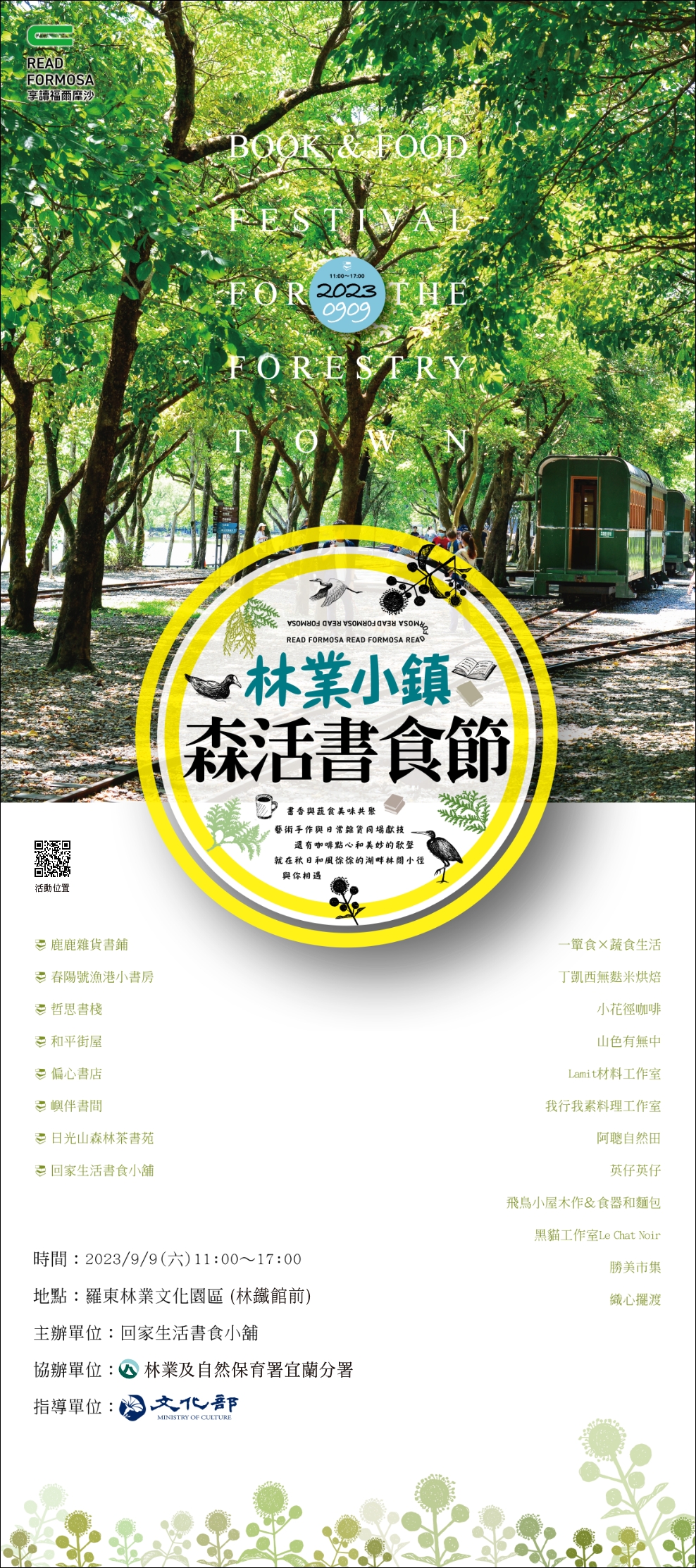 林業保育署宜蘭分署回家生活書食小舖及日光山森林茶書苑等三個單位合作,共同向申請文化部書店申請「串聯行銷-創新書市活動計畫」,訂於112年9月9日(六)於羅東林業文化園區辦理「林業小鎮森活書食節」及「南方,寂寞鐵道 On The Train講座」,9月10日(日)在園區內的日光山森林茶書苑辦理「野鳥散步講座」,由畫家林麗琪主講,機會難得,歡迎大家一起來共襄盛舉。 林業保育署宜蘭分署所轄管的羅東林業文化園區於明年將邁向100週年,這次「林業小鎮森活書食節」活動特別的是邀請宜蘭在地8家書店和12家蔬食特色美食店家,讓書香和美食共同在具有文化歷史氛圍的羅東林場呈現;另外還有藝術手作與日常雜貨同場獻技,現場的咖啡點心和街頭藝人彈唱演出,體驗秋日和風徐徐的湖畔林間小徑期待與大家相遇。 本次活動中,9月9日(六)特別邀請到「南方,寂寞鐵道 On The Train」導演蕭菊貞在甫新開幕之羅東林業文化園區遊客中心辦理分享講座,9月10日(日) 邀請「野鳥散步」畫家林麗琪於日光山森林茶書苑分享講座,讓來羅東林場的遊客可以更加瞭解鐵道的故事及生活周遭的自然生態,來場身心靈饗宴及深度的林場小旅行,林業保育署宜蘭分屬歡迎大家一起來參加。 「林業小鎮森活書食市集」流程表 時間:9/9(六)上午11:00~17:00 地點:林業保育署宜蘭分署羅東林業文化園區(竹林車站到林鐵館之間舊鐵道兩旁林蔭) 流程: 1.10:00 「南方,寂寞鐵道」新書講座/ 蕭菊貞導演/地點:林業保育署宜蘭分署/遊客服務中心(視聽室) 2.10:50 主辦單位及貴賓致詞 3.11:00 林業小鎮書市集活動正式登場 4.11:30 鐵道紀念戳章蓋章活動(園區竹林車站、林鐵站及日光山森林茶書苑) 5.12:30~13:20 民謠&民歌演唱 6.17:00 市集活動結束,互道珍重 時間:9/10(日)下午14:00 1.14:00 野鳥散步書籍分享會 畫家林麗琪 地點:日光山森林茶書苑
