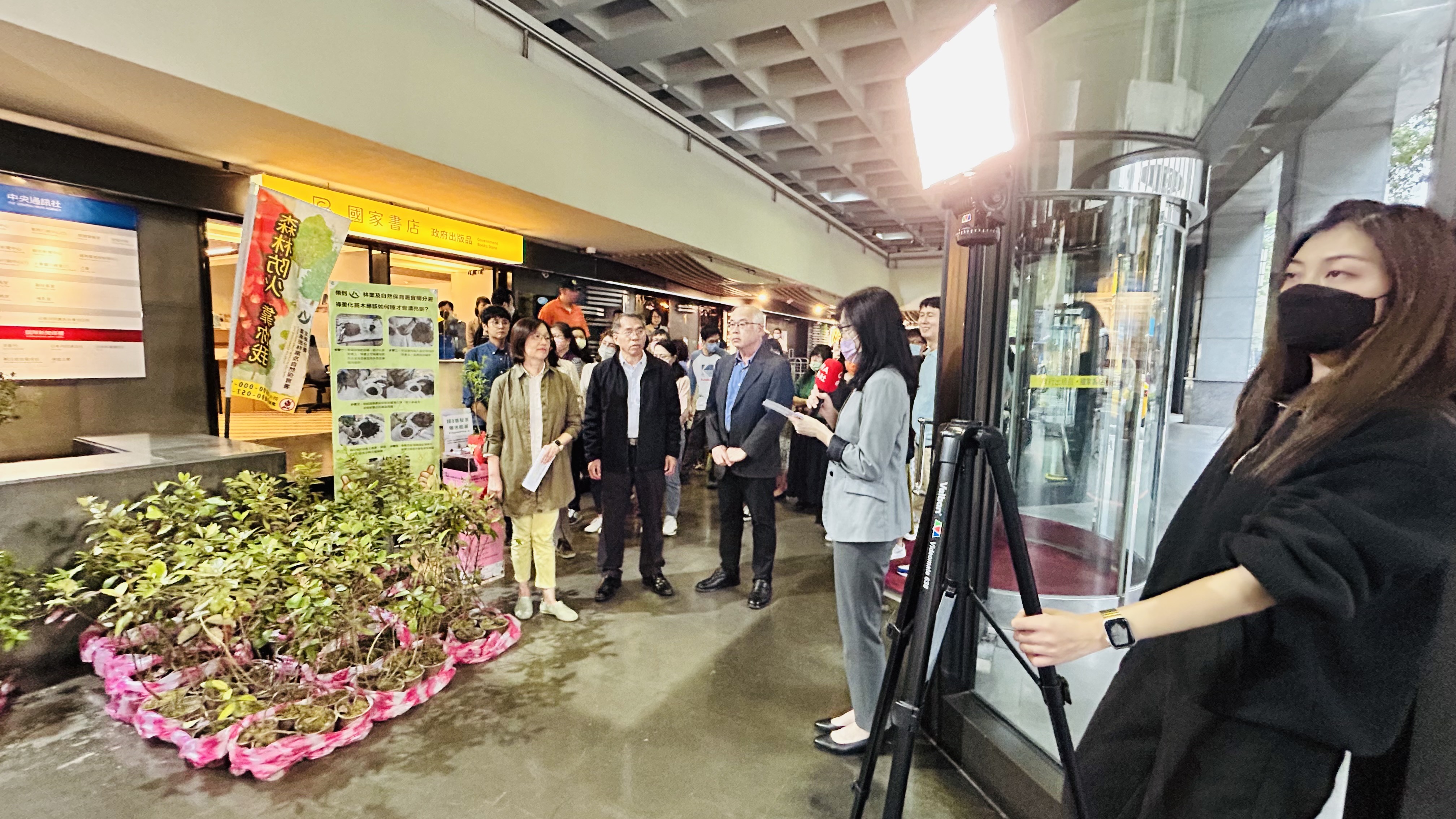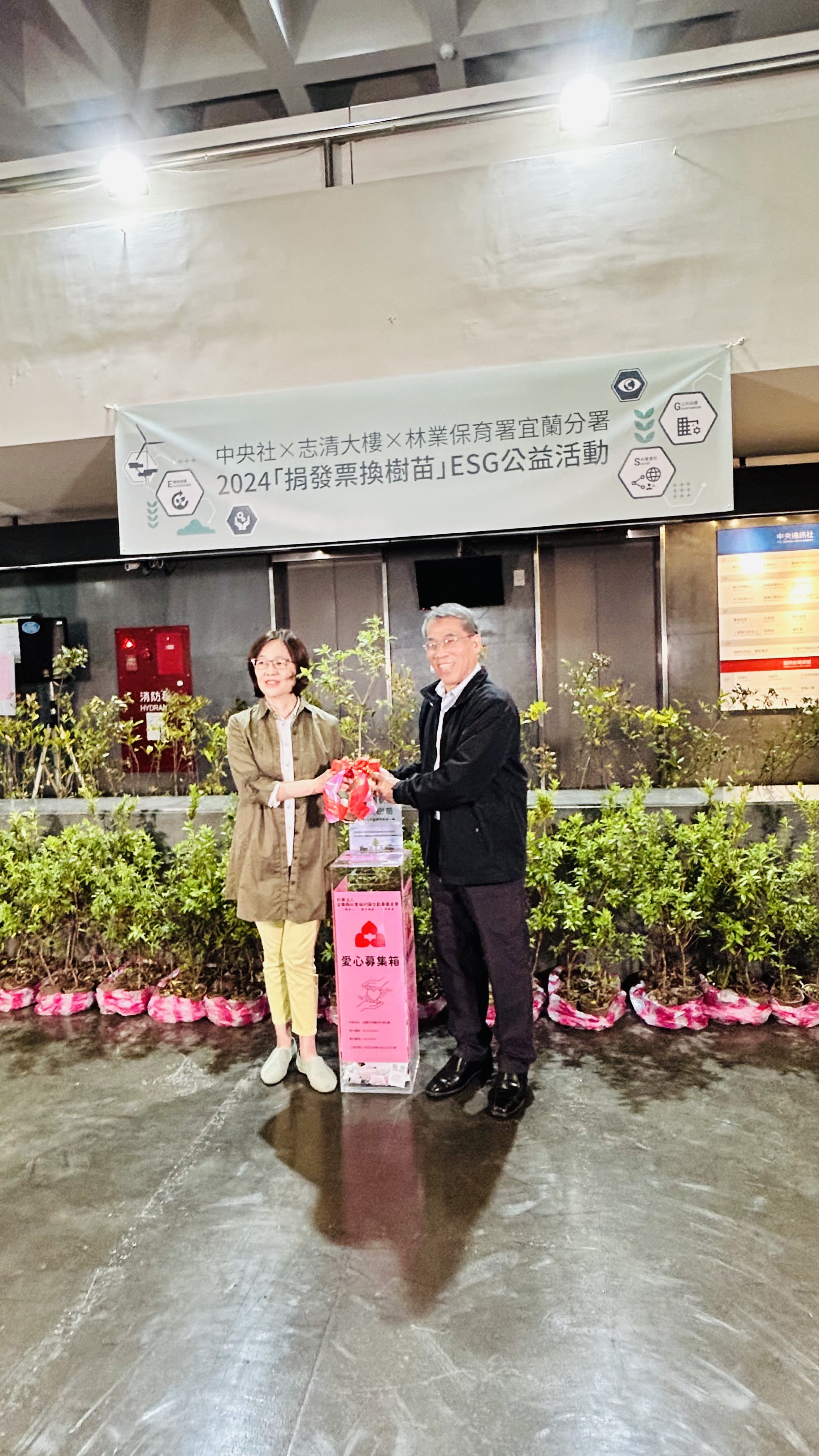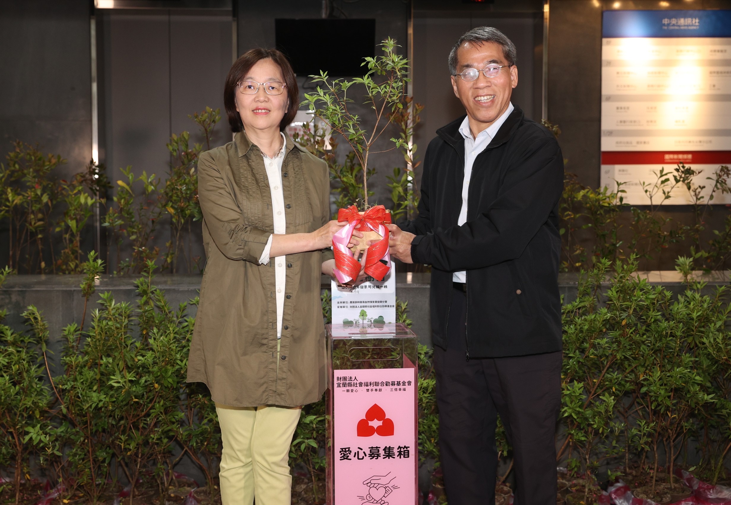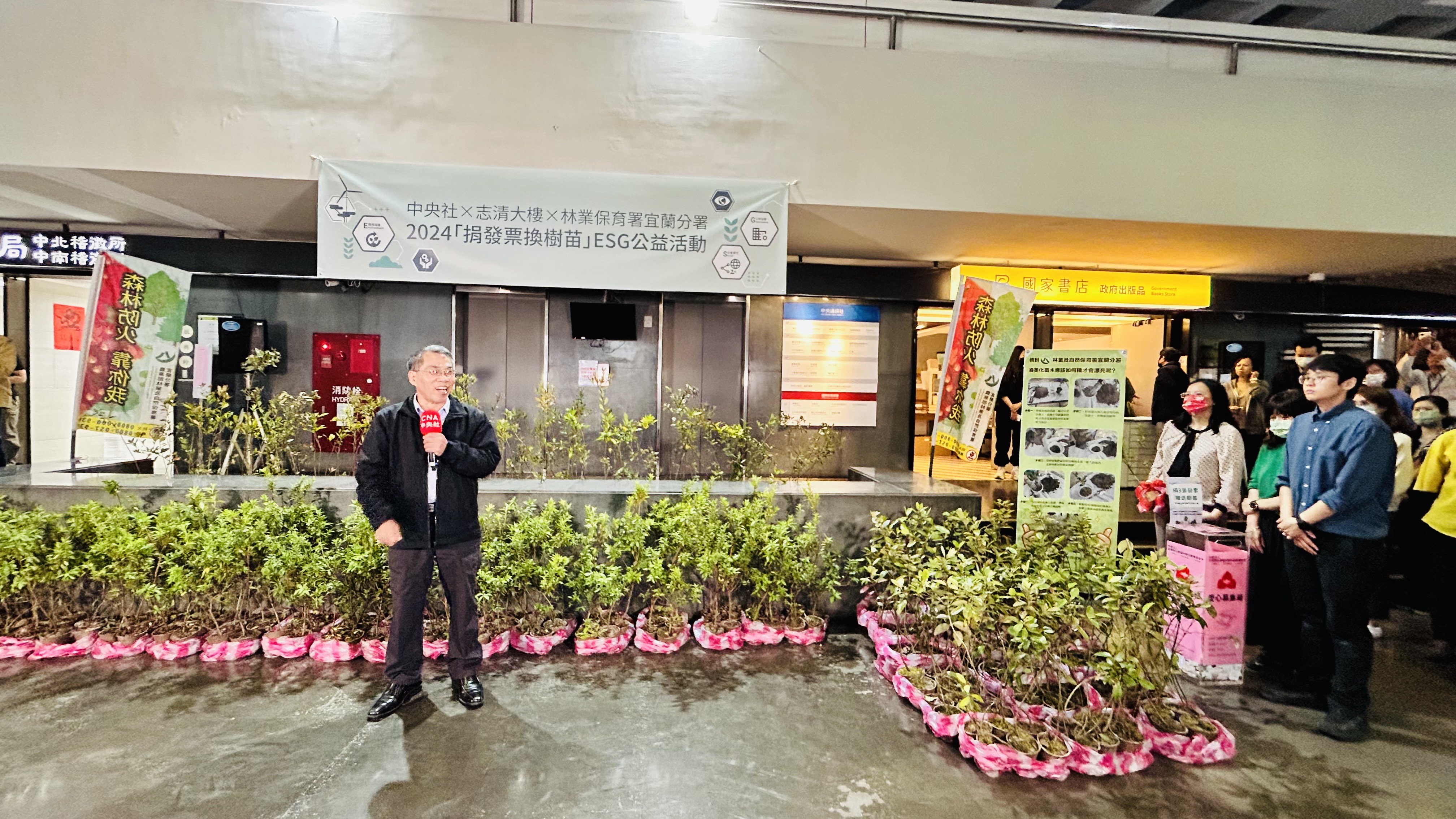 本日(3/28)宜蘭分署與中央通訊社配合植樹月活動及中央通訊社百年社慶,發揚「百年轉身 自由永續」精神,並響應ESG企業永續作為,由社長曾嬿卿、中央永續願景小組召集人陳正杰副社長、王思捷總編輯、梁惠玲總監與林業保育署宜蘭分署長蕭崇仁,攜手合作辦理『捐發票換樹苗』活動,現場提供金毛杜鵑、桃金孃、烏來杜鵑、田代氏石斑木等5種台灣原生植物共422株樹苗,供中央社同仁、勞動部以及國稅局同仁共襄盛舉,以3張發票換1株樹苗,讓大家植樹減碳愛地球,同時發揮愛心做公益。本日一共募集1266張發票,宣揚植樹減碳重要性,用具體行動實現永續發展目標,獲得熱烈迴響。