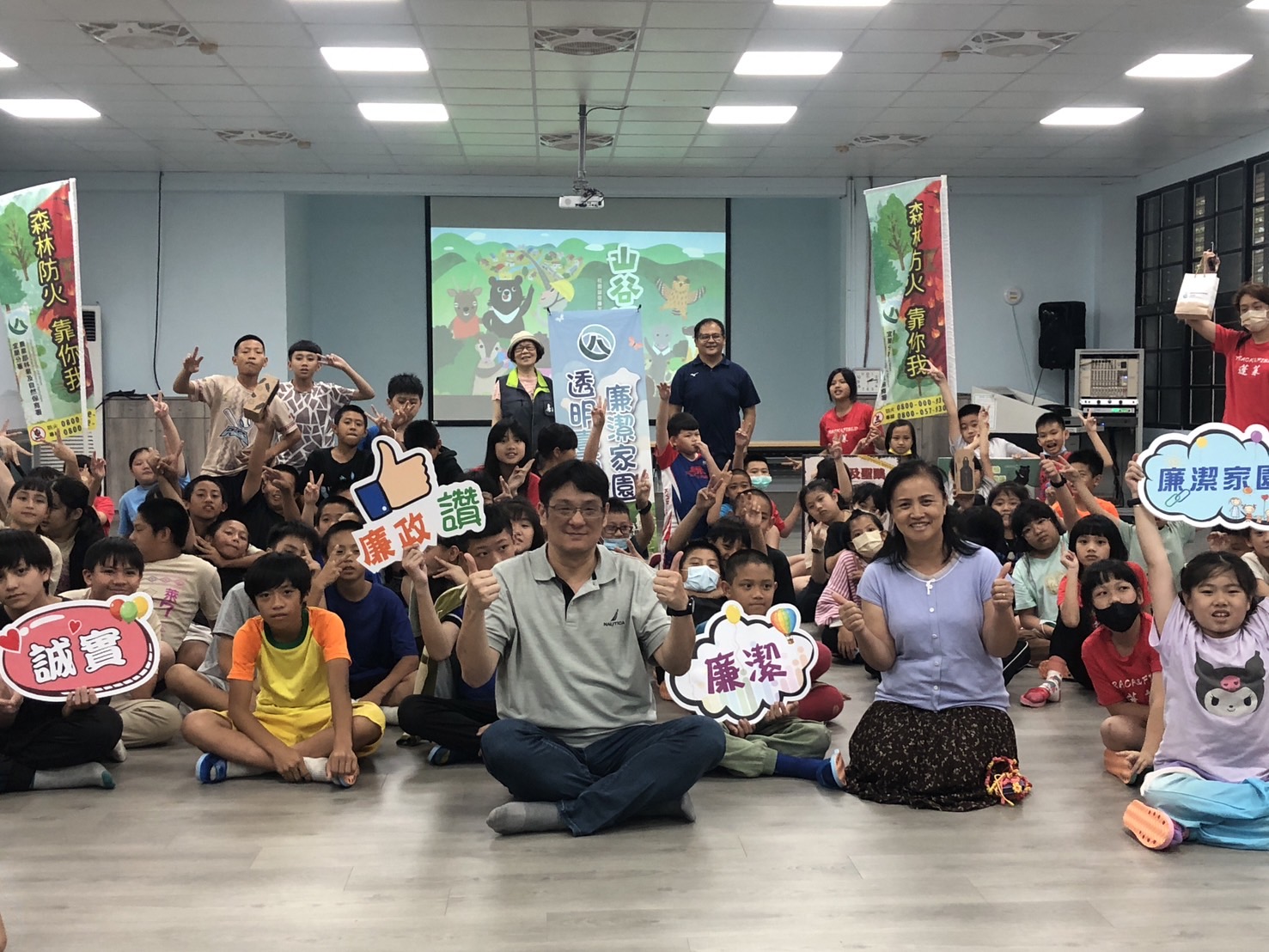 林業保育署宜蘭分署為宣揚農業部反貪倡廉決心及落實聯合國反貪腐公約預防措施中所倡議之反貪腐教育工作,規劃於宜蘭縣偏遠地區小學辦理2場次校園廉潔宣導,於113年5月7日來到「蓬萊國小」,透過分享「山谷裡的故事」與學童互動,並結合所轄南澳工作站「愛林護林保林」業務共同宣導,以森林保育結合誠信概念,傳達森林永續及廉能不竭意識。 2018年農業部(前身為行政院農業委員會)配合國際公約(生物多樣性公約愛知目標)訂定國土綠網計畫,串連公部門與民間社區團體,在全臺的「森、川、 里、海」打造國土生物安全網絡,以人與自然和諧共生為目標,關注 「社會、生產、生態」地景、海景,維護生物多樣性。「山谷裡的故事」即以此為發想,以生態廊道為背景,加上擬人化野生動物的角色,故事中,山豬村長為了如期解決交通問題,從一開始以不當方法排除不同意見者的干預,到後來與動物們一同尋求安全回家的路,讓生態環境與城鄉發展和諧並進,故事隨著情節導入了「行政透明」、「反賄賂」及「企業誠信」等概念,無論是生態友善的觀念,還是廉潔誠信的意識,都是需要從小扎根深植在這片土地上每個人的心中。 本次校園廉潔宣導活動,由林業保育署宜蘭分署政風室及廉政志工負責規劃執行,配合故事裡的動物角色製作道具,讓學童沈浸於故事中,同時認識保育類動物,為了使學童深入了解故事意涵,並以「想一想」導引學習方式,使學童建立透明課責、拒絕貪腐及誠信永續的價值觀,另外為了增加與鼓勵小朋友互動,現場準備精美宣導品進行有獎問答,期盼透過活潑生動、寓教於樂的互動學習,能為學習中的孩童帶來正直誠信、尊重生命的成長經驗。