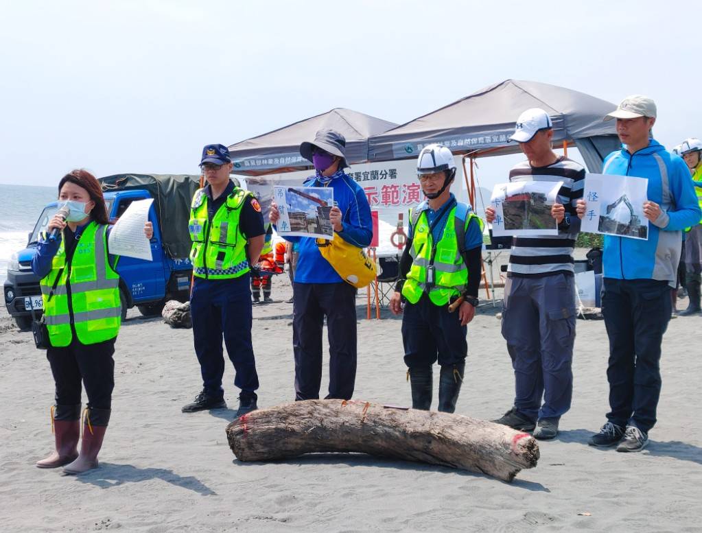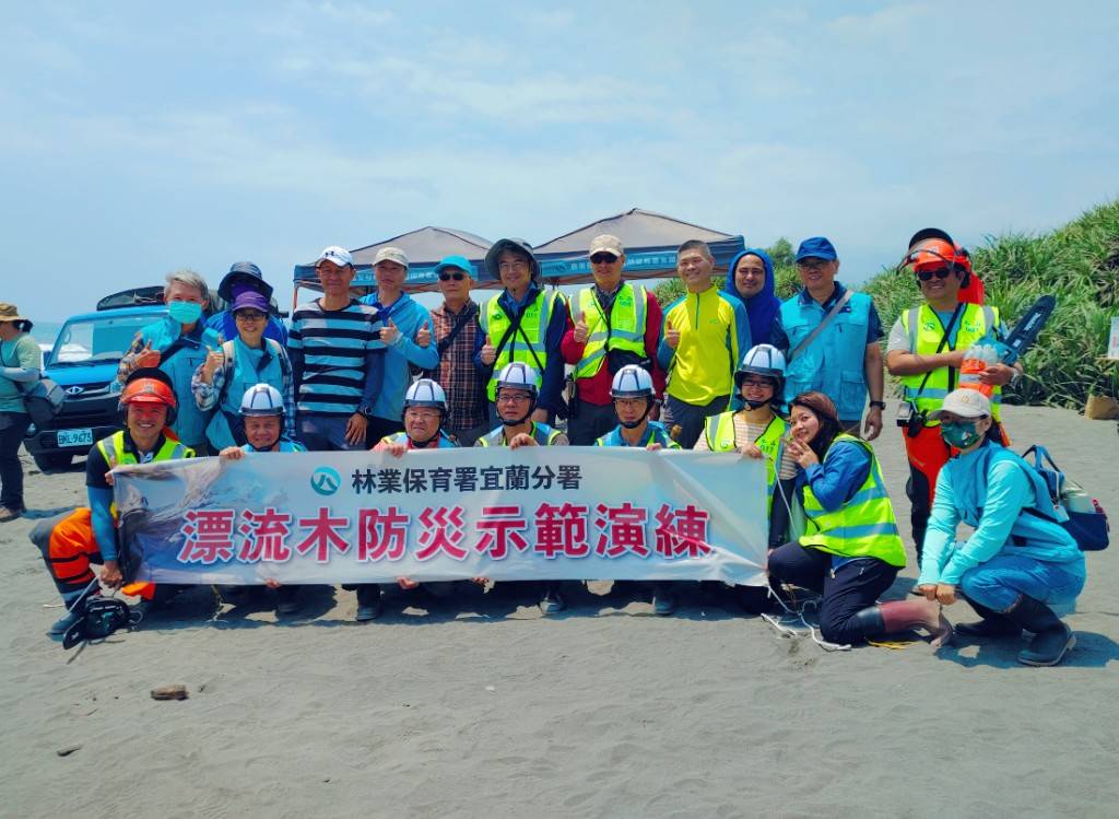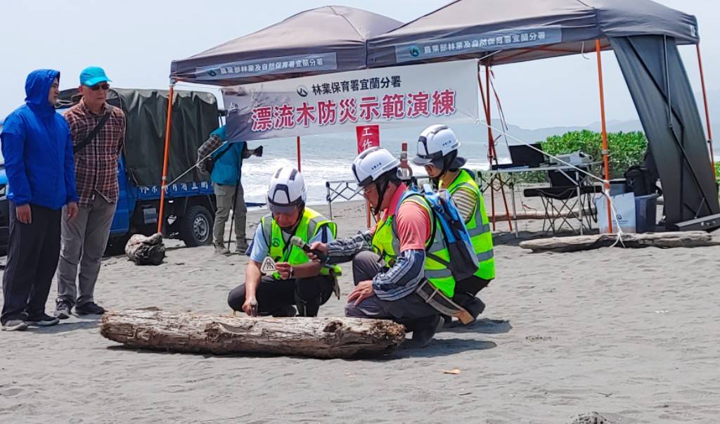 每逢颱風災害發生後,宜蘭海邊容易發生大量漂流木,影響漁民作業及美麗的海岸景觀,為因應即將來到的汛期,林業及自然保育署宜蘭分署今(16)日邀集新北市政府、基隆市政府、宜蘭縣政府、交通部觀光署東北角及警政署保安第七總隊第四大隊等單位,於五結清水海灘進行漂流木防災示範演練。 此次演練由林業保育署宜蘭分署冬山工作站漂流木處理小組進行示範,模擬颱風災害發生後,巡視人員發現海岸線大量漂流木,經通報後啟動海灘漂流木清理機制,不具標售價值漂流木將集中載運至臨時堆置場,若發現具標售價值漂流木則進行樹種辨識、檢尺、打印、集運等作業;另為強化對漂流木撿拾規定之應對,也模擬民眾於公告開放撿拾後,漂流木欲做商業使用之登記作業流程,以期能提升現場同仁緊急應變能力。 林業保育署宜蘭分署表示「漂流木災害應變處理」已列為政府災後重點工作,今年度已邀集各機關召開分工整備會議確認清理權責,且於5月6、7日及13、14日辦理二場次各2日之木材辨識、檢尺教育訓練課程,以強化處理漂流木之標準作業流程。希望透過分工整備會議以及這次現場的實際操作演練,可增加機關間分工合作默契,一旦海灘有漂流木災害發生,各單位可依分工迅速進行漂流木清理工作,避免造成二次災害,共同達成「向海致敬」7日海岸清潔之目標。