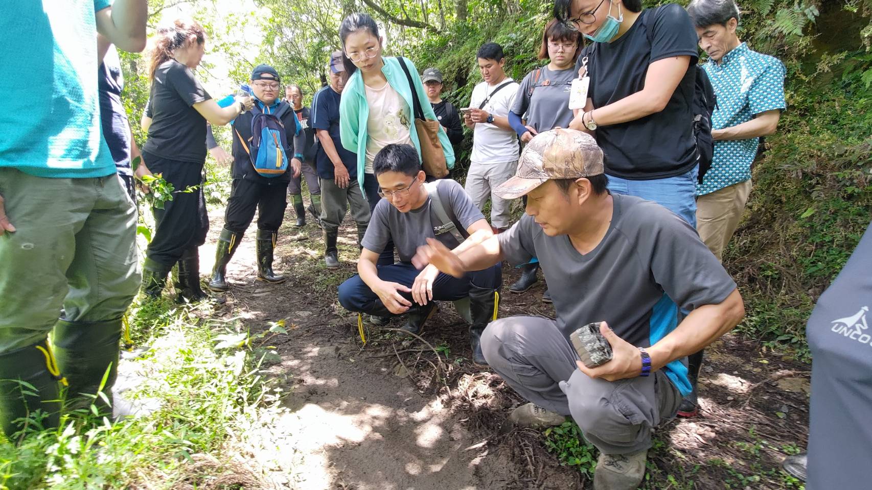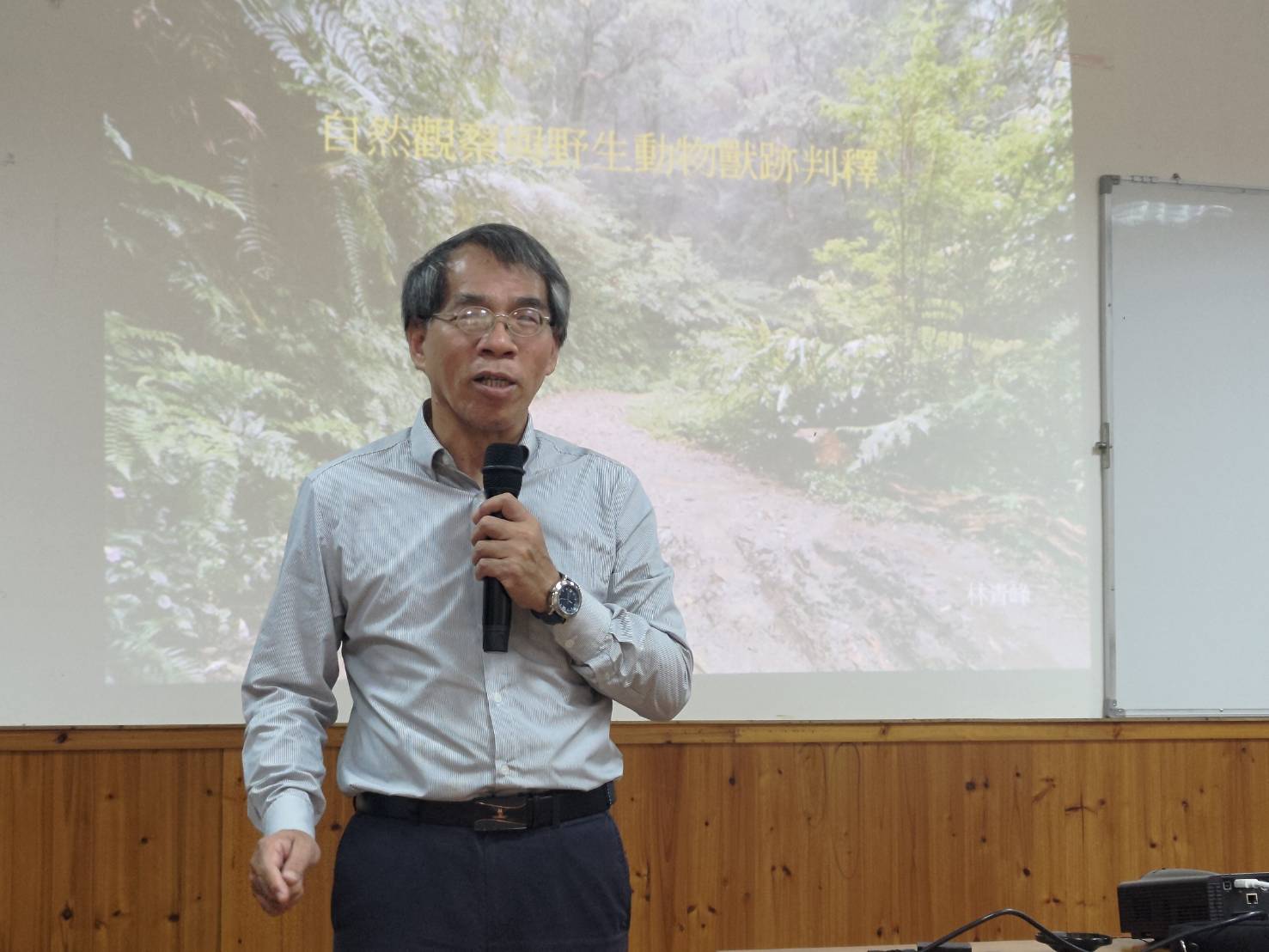 林業及自然保育署宜蘭分署為強化分署同仁與志工夥伴執行野生動物保育工作之野外生態觀察能力,於113年6月7日、6月13日邀請臺灣知名生態觀察家林青峯老師於所轄四堵苗圃舉行野生動物獸跡判釋教育訓練,6月7日的室內課程林青峯老師以生動活潑的方式分享他多年從事生態觀察的心路歷程、冒險故事及野外拍攝的影像紀錄與自製標本,帶領大家認識野生動物的各種痕跡(獸徑、排遺、足印、叫聲、巢穴…等)。6月13日的實務操作則帶領大家前往淡蘭古道南路進行獸跡巡蹤和紅外線自動照相機選址的操作,沿途林青峯老師化身偵探一一破解野生動物遺留下的線索,可見山豬蹄印、小型食肉目(果子狸、食蟹獴…)足印、山羌排遺、各種鳥鳴等…,分署同仁驚喜連連,也能增進自身本質學能。 臺灣野生動物族群從近年調查監測數據顯示呈現穩定成長趨勢,活動範圍也漸從山區擴張至平地,兩者接壤之淺山、丘陵地區則成為野生動物利用、人類活動高度重疊區域,更是自然資源管理及防治野生動物侵擾的重點區域。紅外線自動照相機的應用是自然資源管理的有效工具,選擇野生動物喜愛利用的環境架設紅外線自動照相機才能有效地蒐集數據並進行後續分析。應用於特定物種監測(例如石虎),更是需要掌握其習性及棲地特徵,才有機會捕捉珍貴精采的畫面。對於防治野生動物侵擾而言,則必須先判斷是遭受那些動物的侵擾才能提出適切的共存榮策略。利用動物遺留下的痕跡就成了認識動物鄰居的最好線索,透過林青峯老師課堂上的分享提升同仁從事保育業務的知能及職能。 理解才能帶來包容,因此林業及自然保育署近年推動多項與野生動物共榮之政策。為維護瀕危野生動物或具生物多樣性之重要棲地,透過生態服務給付提供誘因,以生態薪水概念,鼓勵民眾採取對瀕危物種族群及重要棲地保護有利的作為。為防治臺灣獼猴、山豬、臺灣黑熊等野生動物對於農作的危害已自105年起補助農民架設電牧器圍籬;另自107年起執行的國土生態保育綠色網絡建置計畫結合里山倡議願景,跨域整合各政府單位及民間夥伴協力推動友善環境,透過點、線、面串連公、私有地,營造人與自然和諧共生的環境,使臺灣生態系更為健全。