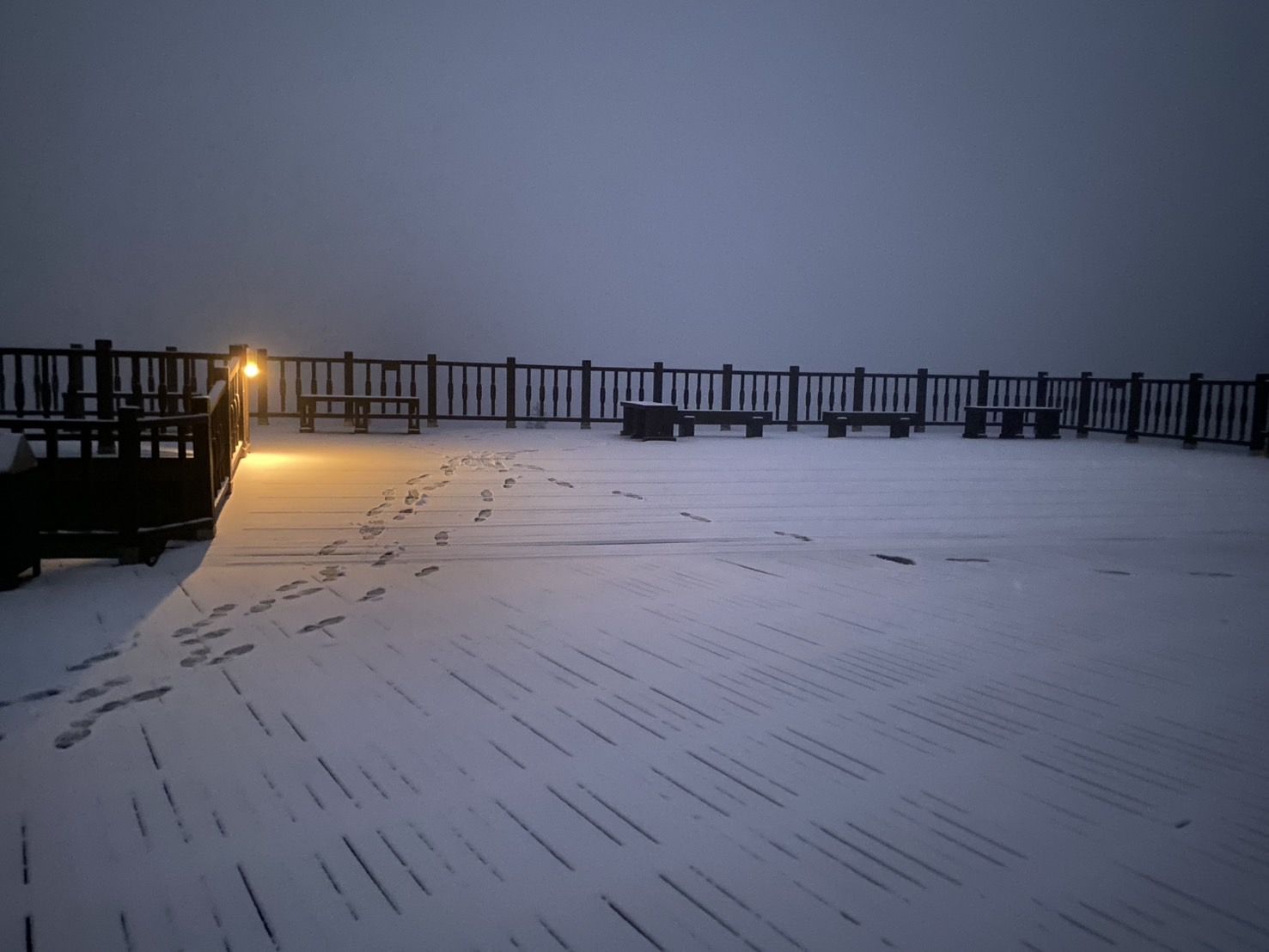 太平山國家森林游樂區低溫來到-2度,在小年夜(1/27)的凌晨5點開始下冰霰,一直持續到上午9點,累積厚度約有3公分。 林業保育署宜蘭分署提醒大家,小年夜中午過後持續到除夕期間,是一年一度的例行性休園,不提供入園,民眾可隨時查詢官網及粉專的最新消息。 初一開園當日,若持續低溫,致路面結冰,需啟動道路管制,將再發布訊息。