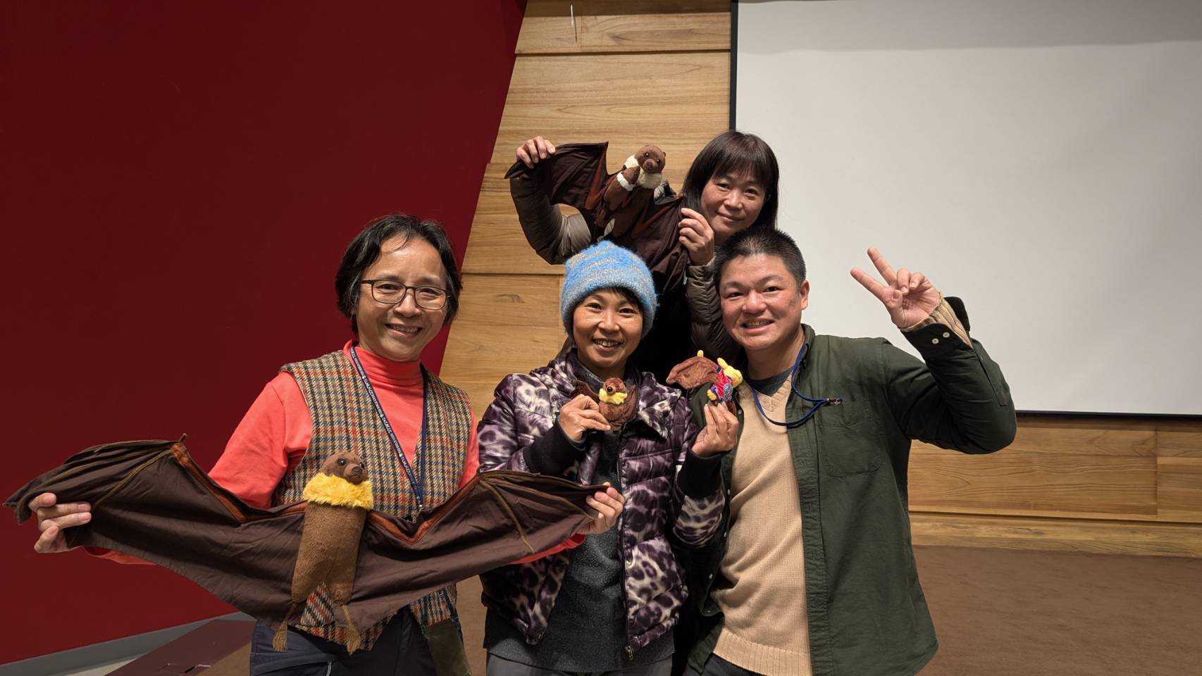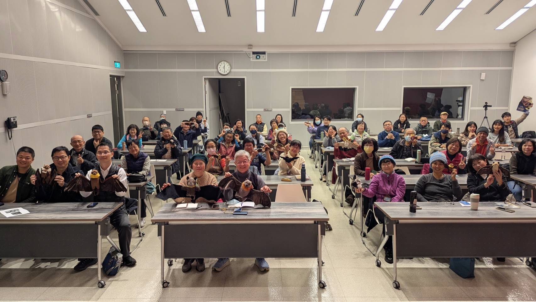 臺灣狐蝠為第I級瀕臨絕種保育類蝙蝠,成年個體飛翔時雙翼展開可達1公尺長,飛行能力極佳,其面部神似狐狸,雄性個體頸部有一圈金色絨毛,雌性個體頸部則是銀灰色絨毛,是一種外型貴氣又神秘的蝙蝠,主要以稜果榕、水桐木或欖仁的果實為食,目前已知臺灣狐蝠僅小範圍分布於臺灣東部地區,宜蘭縣龜山島的狐蝠族群為其中之一,且族群量穩定成長中。 因臺灣狐蝠飛行能力佳,在蘭陽平原及東北角海岸近年有民眾目擊臺灣狐蝠的紀錄,林業及自然保育署宜蘭分署為強化民眾對臺灣狐蝠的認識與參與保育行動,促進大眾對自然生態的了解與保護,於114年2月8日委託社團法人臺灣蝙蝠學會在宜蘭縣立蘭陽博物館辦理「宜蘭地區臺灣狐蝠生態保育環境教育講座」,希望透過宣導臺灣狐蝠生態教育與現地調查經驗分享,讓更多人參與臺灣狐蝠的保育行動,共同為其監測及生態維護貢獻力量。 林業保育署宜蘭分署自去(113)年度起正式展開宜蘭地區臺灣狐蝠研究調查計畫,本次講座活動與蘭陽博物館合作擴大辦理並邀請宜蘭分署國家森林志工、宜蘭縣立蘭陽博物館志工、東北角風景區管理處解說志工、新北市觀光旅遊局三貂嶺隧道志工及頭城漁會船家,共計60人參與。講座師資邀集社團法人台灣蝙蝠學會林清隆秘書長及林祖濬理事、社團法人基隆市野鳥學會楊月姿監事、觀察家生態顧問有限公司吳宓思主任與林業及自然保育署花蓮分署志工隊暨荒野保護協會鍾秀綢理事,介紹龜山島生態資源、臺灣狐蝠之基本生態背景、監測與調查之初步教學與花蓮地區的實戰經驗分享,提供參與人員相關知識和實務操作方法,加強對普羅大眾對蝙蝠物種的認識並提升認同感。 理解才能帶來包容,因此林業及自然保育署近年推動多項與野生動物共榮之政策。宜蘭分署期盼透過本次講座課程,推廣大眾臺灣狐蝠的認識,期盼增加臺灣狐蝠目擊與通報的機會,建立宜蘭地區的臺灣狐蝠資料庫,並落實公民科學家的推廣與提升執行成效,達到後續臺灣狐蝠監測調查的人力協助與資料收集之持續性。