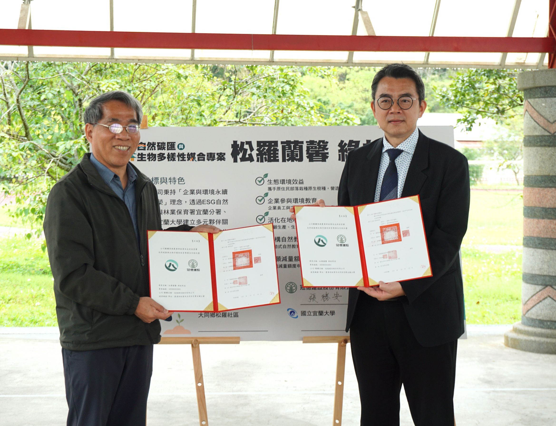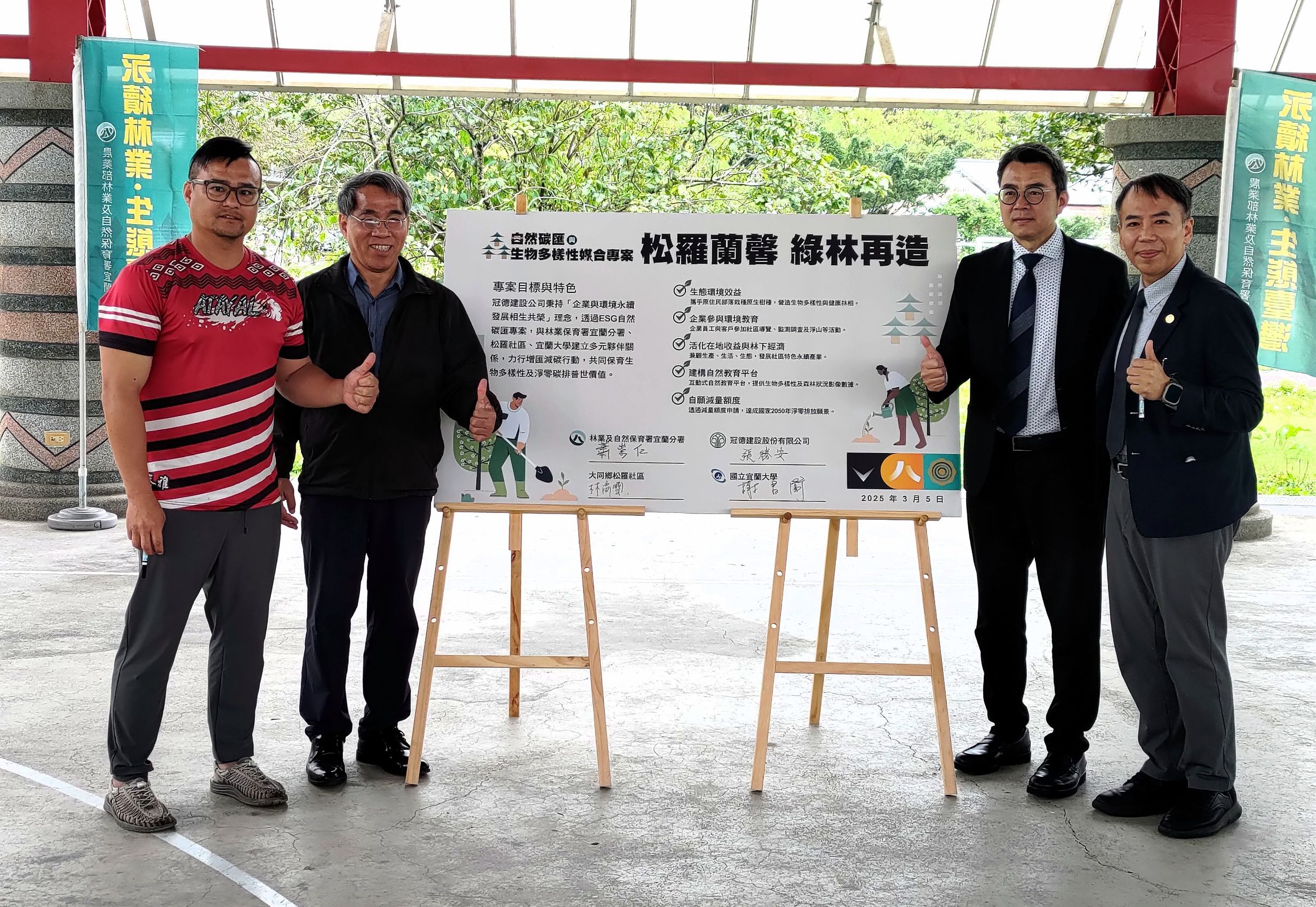 為響應國際2050年淨零排放以及企業益受重視之生態環境保育、社會責任、公司治理等需求,林業及自然保育署自113年起建置「自然碳匯與生物多樣性專案媒合平臺」,提供企業參與ESG多元管道。林業及自然保育署宜蘭分署與冠德建設股份有限公司於今(5)日在宜蘭縣大同鄉松羅部落舉行ESG專案媒合成功「松羅蘭馨 綠林再造-宜蘭事業區79、80林班復育造林」簽約儀式,啟動公私合作共創減碳與山村保育里程碑。 今日儀式先由當地泰雅原民藝術團表演熱舞迎賓揭幕,接續由宜蘭分署分署長蕭崇仁、冠德建設總經理張勝安、松羅村村長林裔璽、宜蘭大學副校長謝昌衛致詞,本次媒合成功專案具備溫室氣體自願減量、生態環境效益、環境教育推廣、建構自然教育平台及活化在地經濟等特色,同時提供在地居民執行造林撫育及保育監測巡守的工作機會,讓森林與生物多樣性所在之山村居民能因ESG專案而受惠,並彰顯ESG的社會效益。 宜蘭分署分署長蕭崇仁表示,ESG對企業而言是Environmental(環境)、Social(社會)、Governance(治理),而對政府部門來說需要的是攜手公司企業付諸力行Engagement(參與的行動)、Solution(解決問題的行動)、Guardianship(守護森林的行動),為企業參與自然保育提供具體的行動指南,宜蘭分署成功媒合冠德建設公司並結合原民部落夥伴,達成企業兼顧永續經營及社會責任,進而落實聯合國永續發展目標(SDGs)、全球生物多樣性框架(GBF)等國際趨勢。 冠德建設總經理張勝安指出,企業的永續經營不僅是品牌形象,更攸關競爭影響力,冠德建設很榮幸成為宜蘭分署第一波媒合之成功首例,規劃以二十年投入逾千萬元,深耕在地長期陪伴,將生物多樣性及自然資本納入企業經營策略,滿足ESG與TNFD(自然相關財務揭露)的核心需求,更協力松羅原住民參與植樹增匯,並委託國立宜蘭大學專業師生陣容輔導辦理生物多樣性監測與技術諮詢,且運用企業集團優勢推廣原鄉特產,促進地方經濟繁榮,未來亦將透過減量額度申請,達成淨零排放關鍵戰略行動。 最後,儀式活動在出席人員及松羅族人大合影留下圓滿禮成,宜蘭分署期望今日儀式可抛磚引玉吸引更多企業及民間團體透過資源投入及跨界合作,宜蘭分署亦陸續推出包含自然碳匯及其他各項類型專案公開上架,以媒合徵求公司企業合作,共同投入ESG行動,展現企業對環境與社會的承擔責任,呼籲各公司企業倘有需求,歡迎逕向該分署接洽詢問。