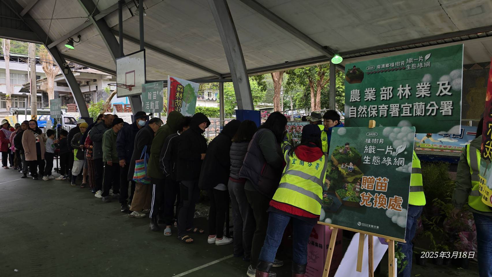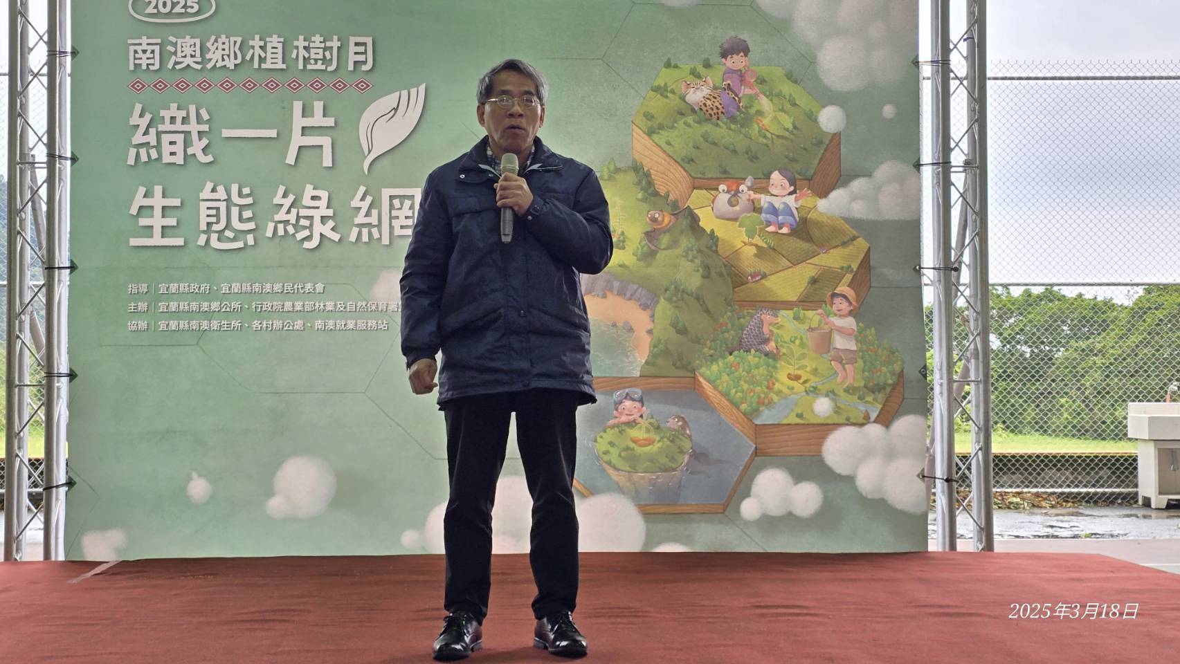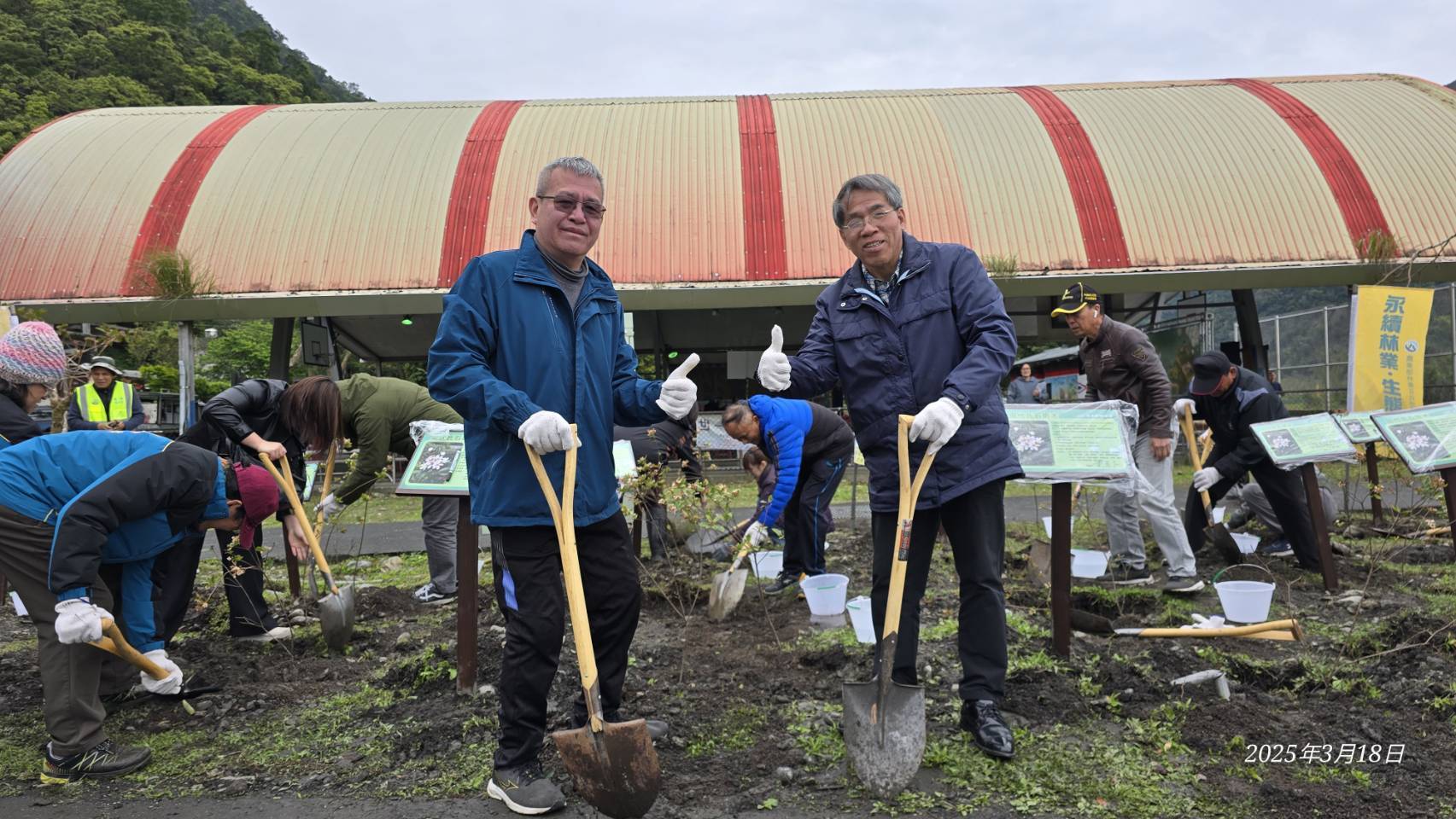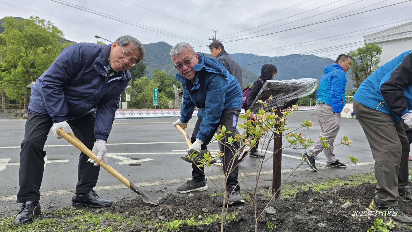 林業保育署宜蘭分署與南澳鄉公所於114年3月18日(星期二)上午10:30在南澳金岳村風雨藍球埸聯合舉辦「114年度植樹節-織一片生態綠網」植樹贈苗活動,宜蘭分署蕭分署長崇仁帶領分署及南澳工作站同仁與南澳鄉長李勝雄帶領各村長、南澳鄉民代表、在地鄉親共同參與。活動在金岳國小迎賓舞中熱鬧登場並由李鄉長勝雄、林業保育署分署長蕭崇仁一同栽植田代氏石斑木,為部落家園增色美麗容妝,讓我們共同守護這片美麗的土地,攜手邁向更加永續的未來。