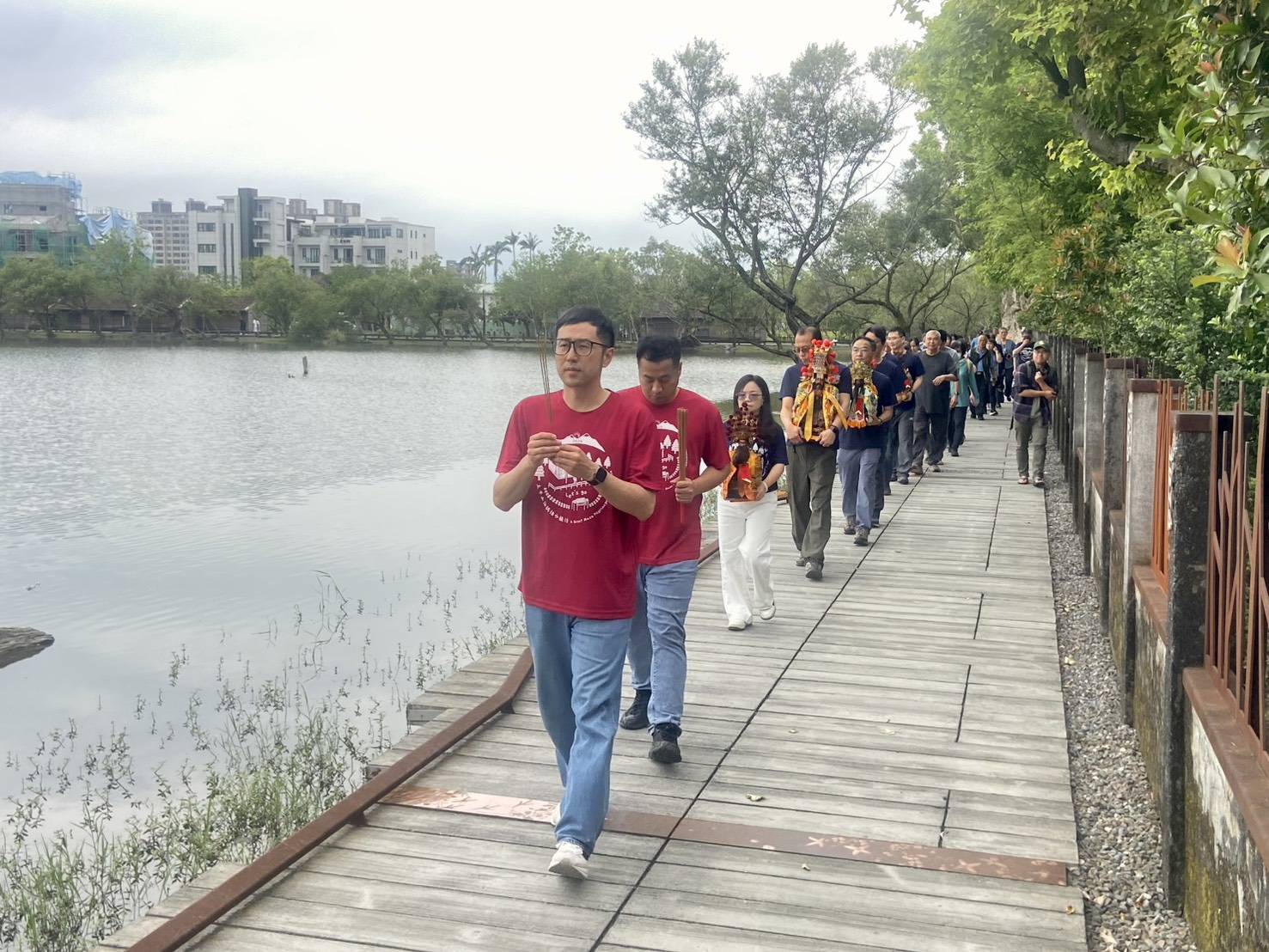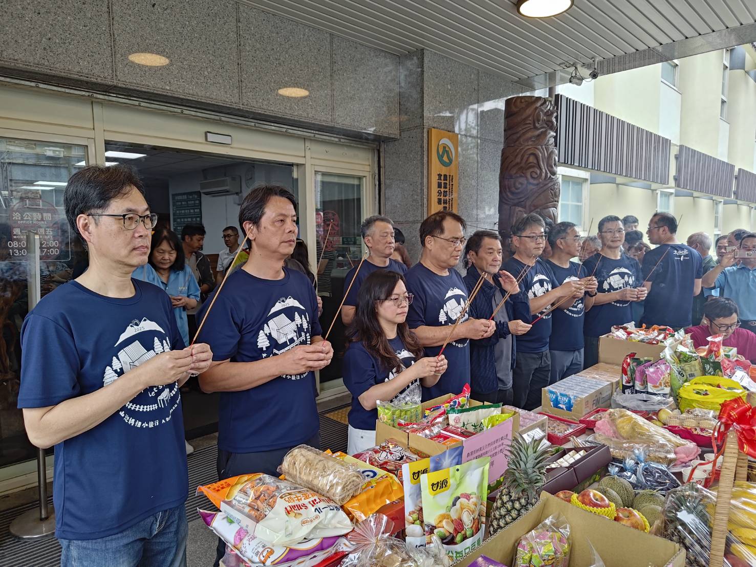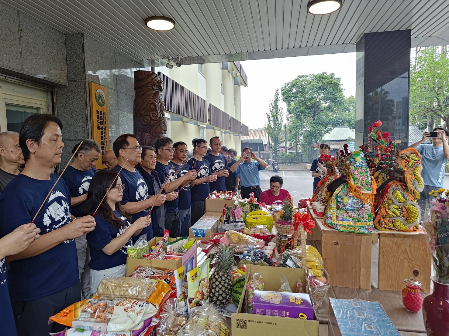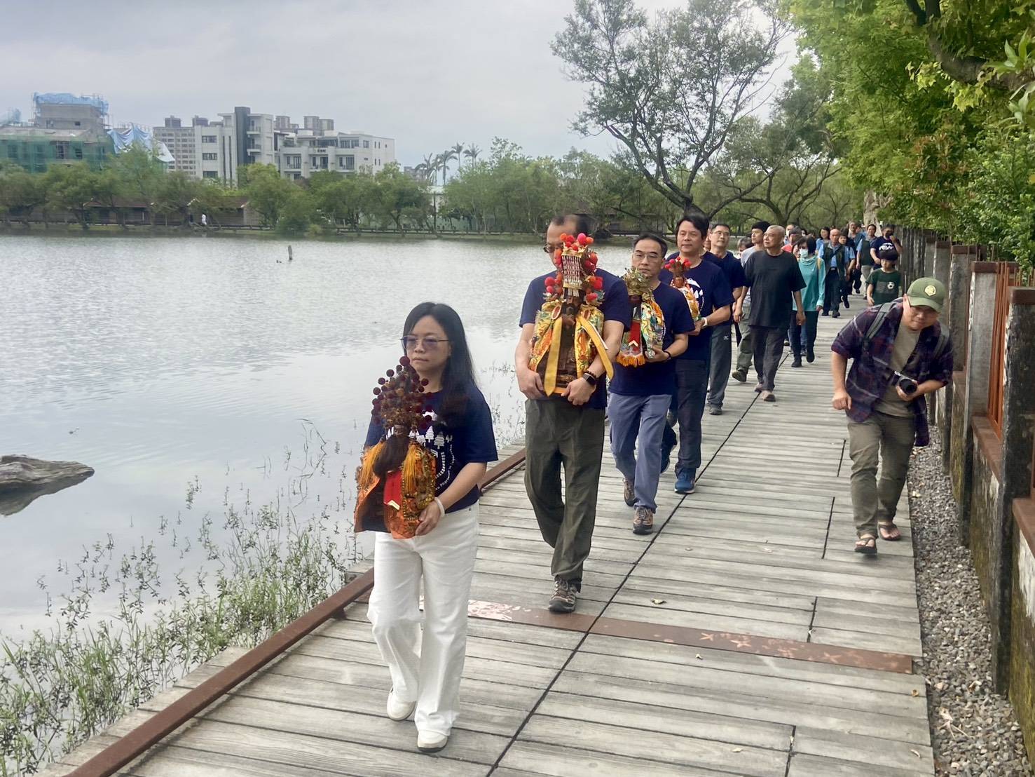 今日12:30國姓爺以及眾神尊先抵達宜蘭分署,在副分署長鄧江山率主管、員工、合作團隊及信眾統一拜祀,參香祈福,於13:30在竹林車站 集合後,開始繞境羅東林場的貯木池一圈,展開祈福之旅,圓滿完成。