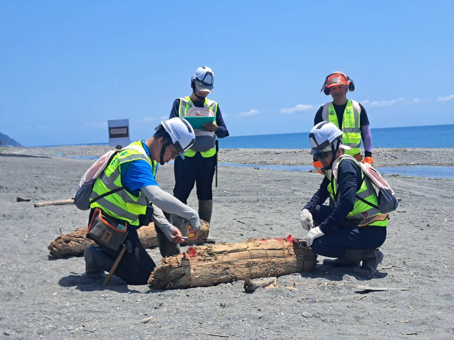 去年康芮颱風襲台,造成臺灣東部海邊產生大量漂流木,不僅影響漁民作業也破壞美麗的海岸景觀,為因應即將來到的汛期,林業及自然保育署宜蘭分署昨 (4月30日) 日邀集國有財產署、宜蘭縣政府、新北市政府、基隆市政府、臺北市政府等單位計80人,於南澳海灘進行漂流木防災處理示範演練。