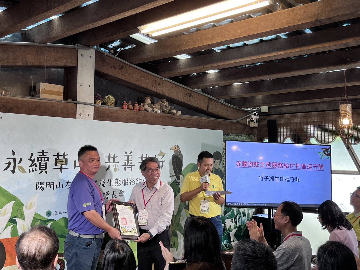在北投竹子湖山野田間,一場由農民、社區、政府與自然共同編織的生態願景正在發生。農業部林業及自然保育署宜蘭分署今(26)日聯合內政部國家公園署陽明山國家公園管理處、財團法人慈心有機農業發展基金會,舉辦「永續草山 x 共善共好」陽明山友善農業及生態服務給付推動成果發表會,展現近年來地方與自然共舞的溫柔足跡。 活動於財福海芋田與名陽匍休閒農莊辦理,透過成果展示、田區守護者感謝儀式、巡守故事分享、農場導覽與田間饗宴等多元形式,邀請與會者實地踏查竹子湖頂湖地區,見證保育生物的回歸與農業生產方式的轉變。竹子湖地區友善產業的轉變及耕耘,在地農友與社區踴躍參與為核心因素,同時更透過公私跨域合作方式,與陽明山國家公園管理處、桃園區農業改良場、林業保育署宜蘭分署、慈心基金會、學界、地方民間團體及契作企業等多方支持,共同見證這段保育旅程的里程碑。 竹子湖是臺灣赤腹游蛇重要的殘存族群棲息地。該物種屬於珍貴稀有的一級保育類野生動物,近年因氣候變遷與土地利用衝擊導致棲地破碎、族群數量驟降。為守護這片生機,宜蘭分署自113年起攜手慈心基金會推動「赤腹游蛇生態服務給付示範計畫」,提供生態薪水鼓勵農友實施不施用除草劑、維持田區蓄水等友善農法,並結合棲地營造、社區巡護與生態教育等措施,逐步形塑竹子湖農業與保育並行的草山共好模式。 自113年推動至今,「赤腹游蛇生態服務給付輔導計畫」由11戶12案成長至18戶20件友善農地保育案申請,農友及居民均是這段保育旅程的關鍵因子。其中,由曹昌正里長號召成立的赤腹游蛇巡守隊,展現出高度的在地行動力與社區凝聚力。曹里長率先響應保育行動,自發性組成巡守隊,每月進行巡查紀錄工作,巡守路線達5公里、涵蓋核心及周邊棲地45公頃,主動掌握赤腹游蛇的活動與棲地狀況並向遊客進行保育宣導。他們用實際行動守護著這片山林與濕地,也為在地生態永續注入源源不絕的力量。從初期觀望到主動維持棲地蓄水、接受友善耕作培訓、協助監測與巡守,這些看似微小的行動,正一點一滴改變竹子湖的農業生產模式。「蛇回來了,田也活了」的農村觀察,正是土地與人共生最真實的寫照。 本案推動過程中,與陽明山國家公園管理處密切合作。憑藉其多年推動之友善農業輔導案奠定合作基礎,讓團隊得以無縫接軌進行農友輔導與課程媒合;並在夜間聯合巡守、核心棲地營造、告示牌設置與自動相機架設等層面攜手協力,有效減少人為干擾事件,並提升棲地合作田區覆蓋率,展現跨機關協力與公私協作的保育韌性。值得一提的是,來自國立宜蘭大學森林暨自然資源學系的毛俊傑老師多年來深耕竹子湖地區,進行赤腹游蛇與濕地棲地的長期生態監測與學術研究,為本計畫提供了堅實的基礎資料與科學支持。毛老師不僅協助建立調查方法與識別標準,也積極參與培力與社區溝通,成為促成在地保育行動與學術研究接軌的關鍵角色,彰顯產官學三方合作的重要性。 宜蘭分署表示,陽明山國家公園不僅是大臺北的後花園,更是北海岸國土生態綠網的重要節點。未來將持續深化生態給付政策推動,攜手更多農友、社區與企業,共同實踐「永續草山、共善共好」的願景,讓人與自然的共存不只是理想,而是實現在我們每一畝田、每一份耕作中的真實日常。