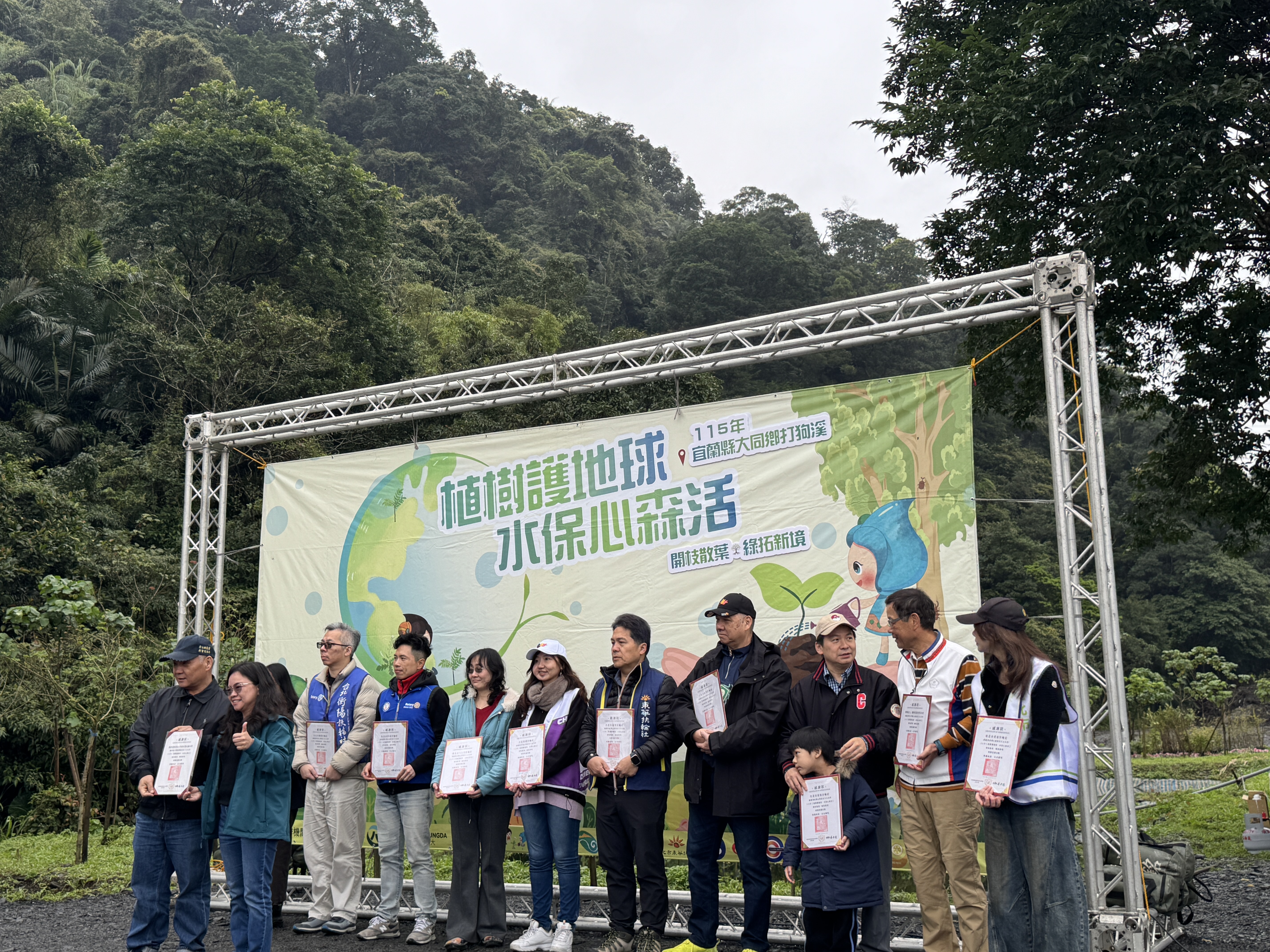 農村發展及水土保持署臺北分署為響應農業部「2040年淨零排放」目標並強化山區防減災能力,透過「自然解方(Nature-based Solutions, NbS)」調適策略,強化土地韌性,展現結合水土保持與生態復育的實踐成果。今日(3/7)聯合林業及自然保育署宜蘭分署,於宜蘭縣大同鄉寒溪部落打狗溪集水區辦理「植樹護地球.水保心森活」開枝散葉、綠拓新境植樹養護活動。 自112年起,林業及自然保育署宜蘭分署提供1萬4千多株苗木在該區域進行植樹,經各相關單位共同努力,已於打狗溪右岸建立約3公頃之河岸綠帶,成果卓越,為確保政策延續性並進一步整治鄰近受外來種入侵區域,今日由陳俊言署長親自出席為活動揭開序幕,並由吳思儀秘書率同仁與在地民眾約百人共同參與,進行苗木新植工作。今年宜蘭分署提供森氏紅淡比、杜英、茄冬、楓香、青剛櫟、光臘樹、烏皮九芎及月橘等共1,855株原生樹種苗木,期逐步恢復在地森林植群,也為河岸地區建立更穩定且多樣的生態系。 植樹不只是綠化環境,更是守護土地的重要行動,每一棵樹的成長,都代表著對環境的一份投入,也象徵我們對下一代的責任與承諾。未來,宜蘭分署也將持續與各機關及地方社區合作,推動更多生態復育與綠化工作,共同守護宜蘭珍貴的山林與河川環境,一起為環境種下希望,讓綠意在土地上持續生長。
