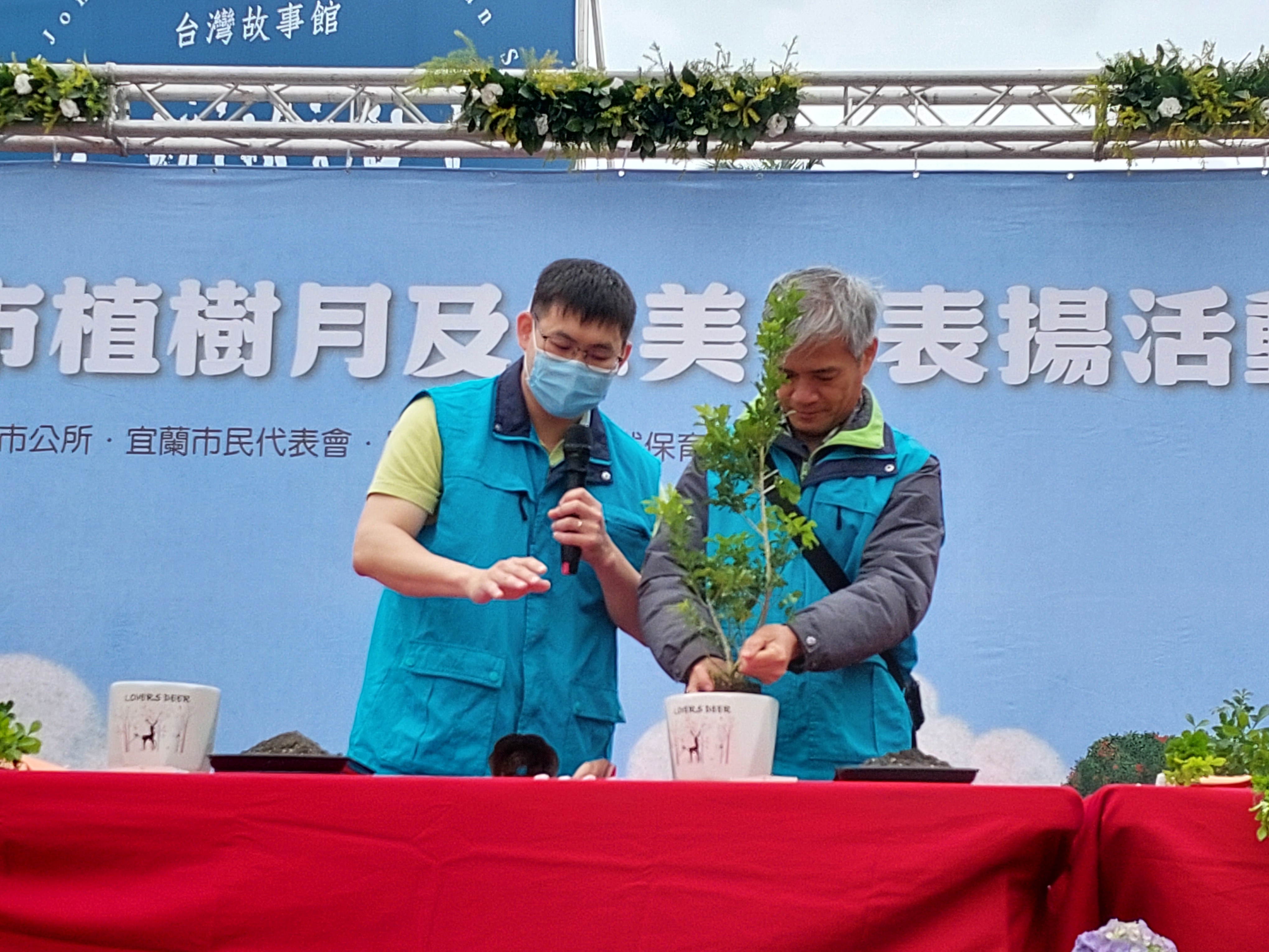 林業及自然保育署宜蘭分署與宜蘭市公所於今(3/21)日上午,在宜蘭市民之森廣場舉辦「115年植樹月及綠美化表揚活動」暨「原地扎根・韌性森活」贈苗活動,現場由宜蘭分署副分署長鄧江山、宜蘭市市長陳美玲及宜蘭縣議會議長張勝德等人與民眾攜手推動宜蘭市市綠美化與生態永續。 宜蘭分署分署提供桂花、台灣原生種山黃梔、烏來杜鵑及共1,200株苗木,以3張115年統一發票兌換1株苗木,吸引民眾熱情參與。本分署募集之發票全數捐贈宜蘭縣社會福利聯合勸募基金會,使綠化行動同時兼顧公益關懷,展現環境與社會共好的力量。活動現場除介紹苗木特色也特別示範苗木移植教學,引導民眾掌握種植技巧,提升植栽存活率,讓每一株苗木都能真正扎根成長。 「原地扎根・韌性森活」不僅是一場贈苗活動,更是一項從日常生活出發的環境行動。透過推廣適地適種的原生或常見樹種,鼓勵民眾親手植樹,讓綠意由個人生活向外延伸,逐步累積成城市整體的生態網絡。